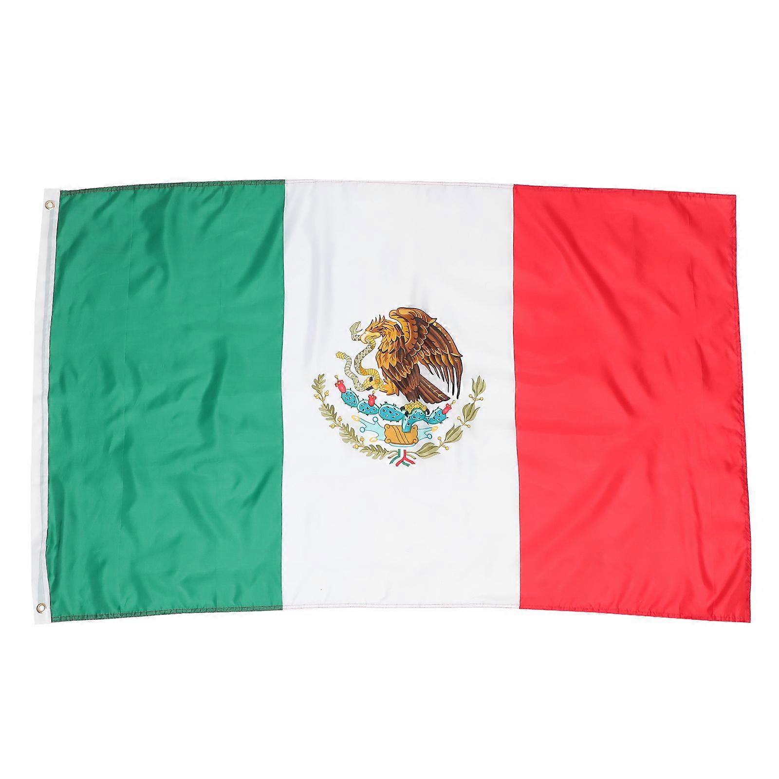 The item is a Mexican flag made of polyester for practical use. With classic and standard symbol pattern design, these flags are perfect for national festive events and any patriotic events. Bring much more fun and festive environment with your friends. Features - Color: Green. - Material: Polyester . - Size: About 150x90x0.1cm. - The color is very and vivid and not easy to fade. - polyester material of strong construction. Durable to use. - Add more patriotic atmosphere for your festival and parties. - Suitable for bar, party decorations and sports clubs, grand opening, festival events celebration. - Perfect for national festive events and any patriotic events. - With double holes on brim deisgn for easy hanging. Package list: 1 x country flag