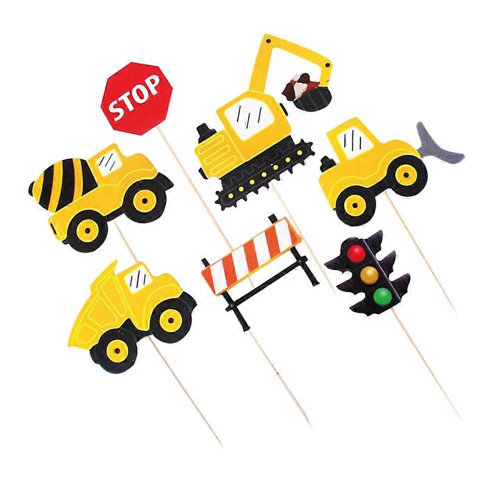 Car Excavator Model Cake Toppers for Decoration 28Pcs Cartoon Style Cake Picks