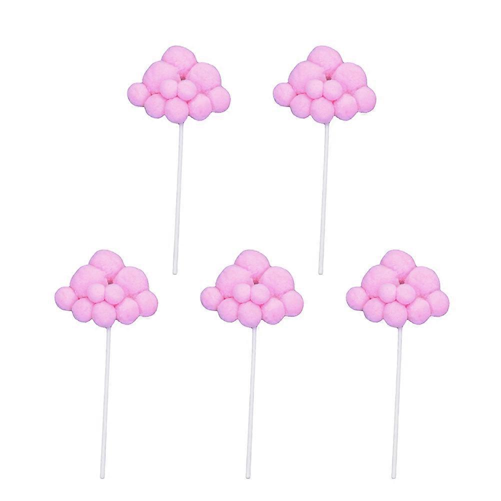 Party Cake Picks Handmade Pink Woolen Yarn Cloud Decoration 5Pcs Set