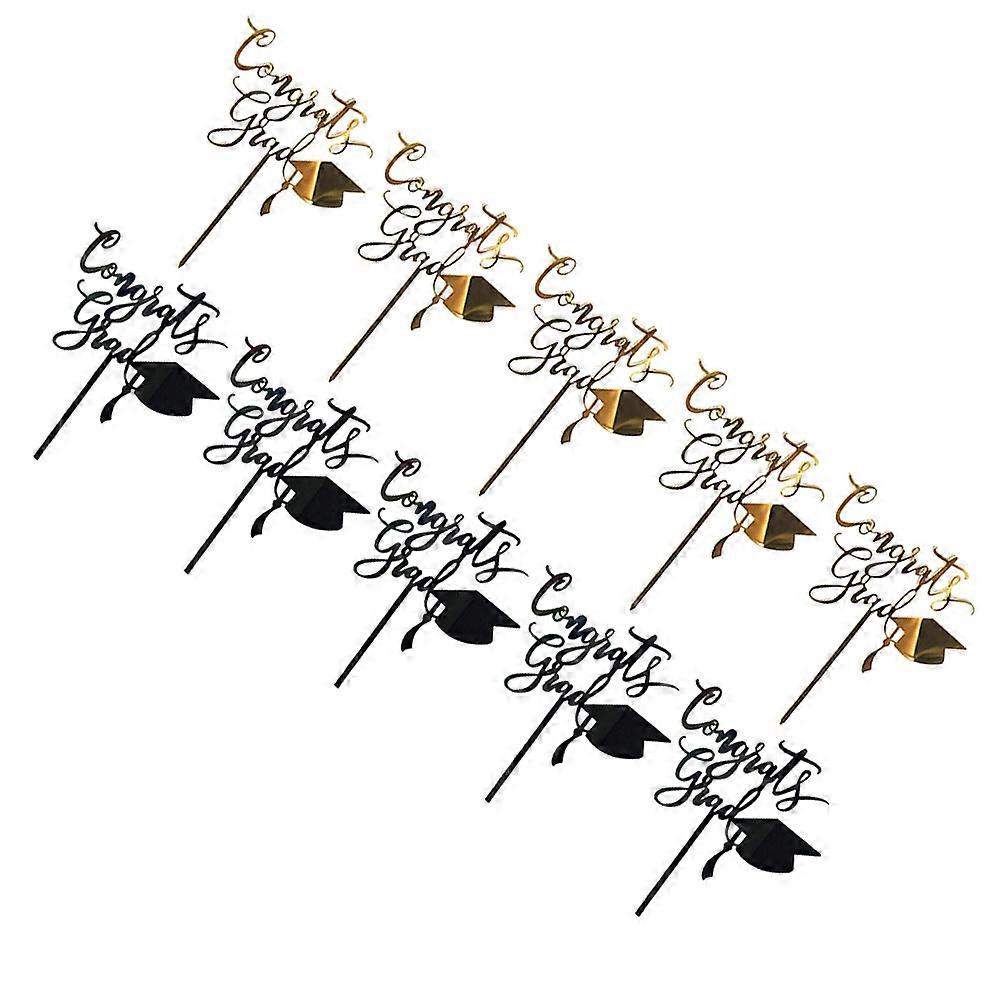 Shiny Acrylic Cake Toppers With Graduation Hat Design For Dessert Decoration 17x12x0.1cm 10Pcs