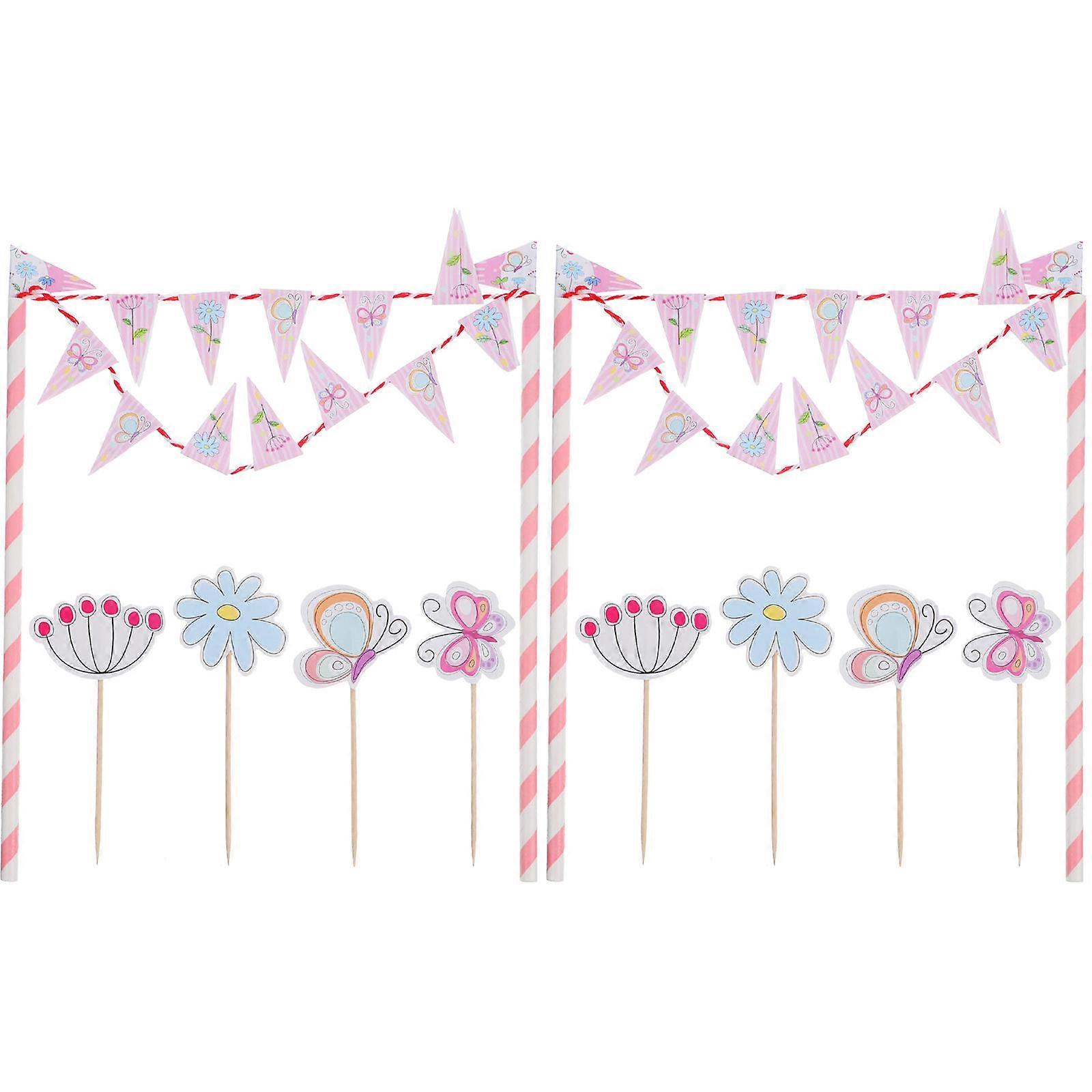 Birthday Cake Toppers Cupcake Picks Pennant Banner for Birthday Party 19 x 9.5 x 1cm Assorted Color Cake Decorating Use 2 Sets