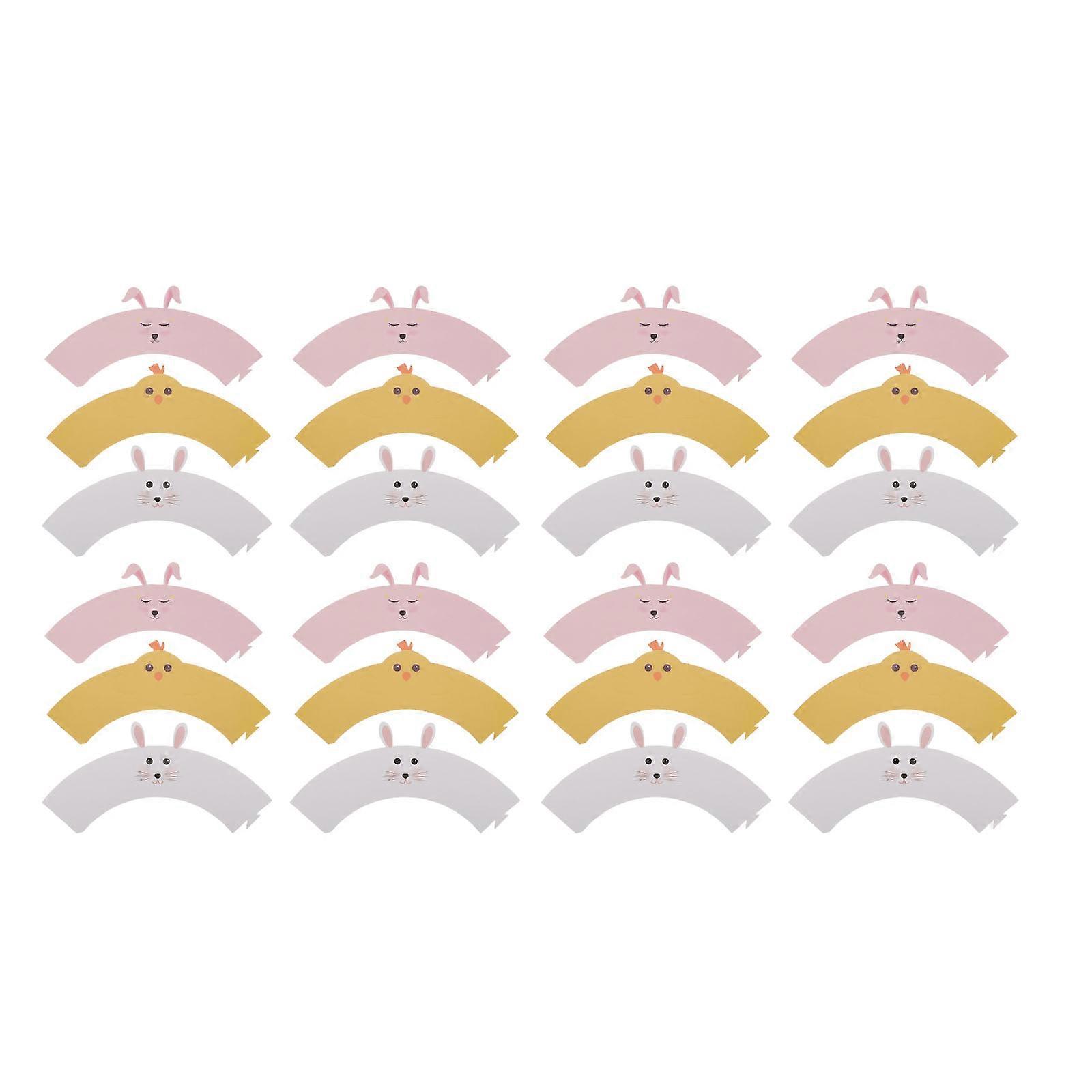 Bunny Cupcake Wrappers Decorations For Easter Party Featuring Assorted Color 24Pcs Round Paper Decoration