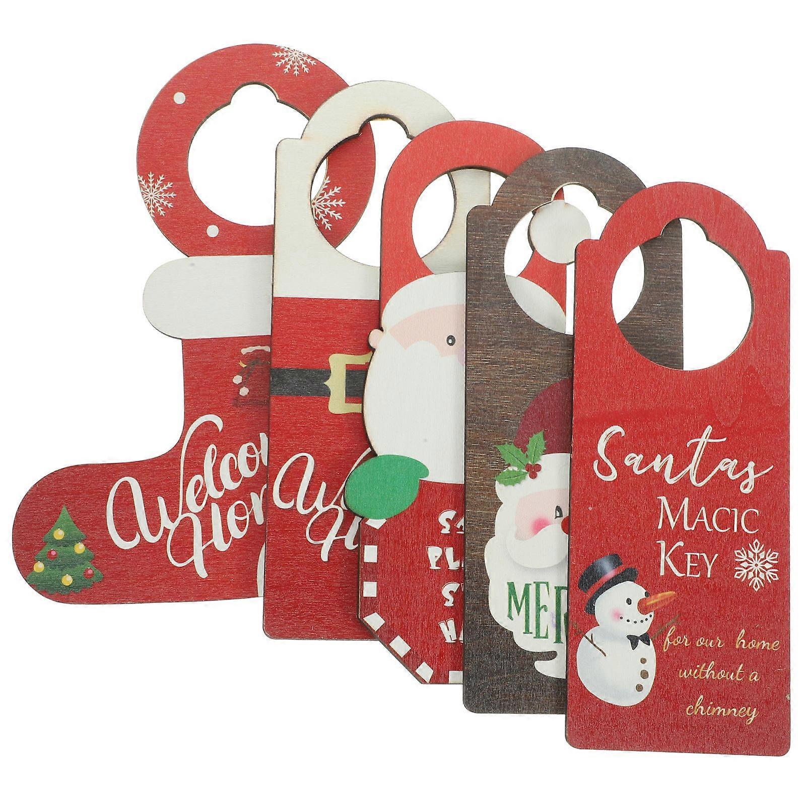Festive Christmas Wooden Decorations 20 Pcs Door Knob Hanging Decor For Restaurants And Homes With Rectangular Shape