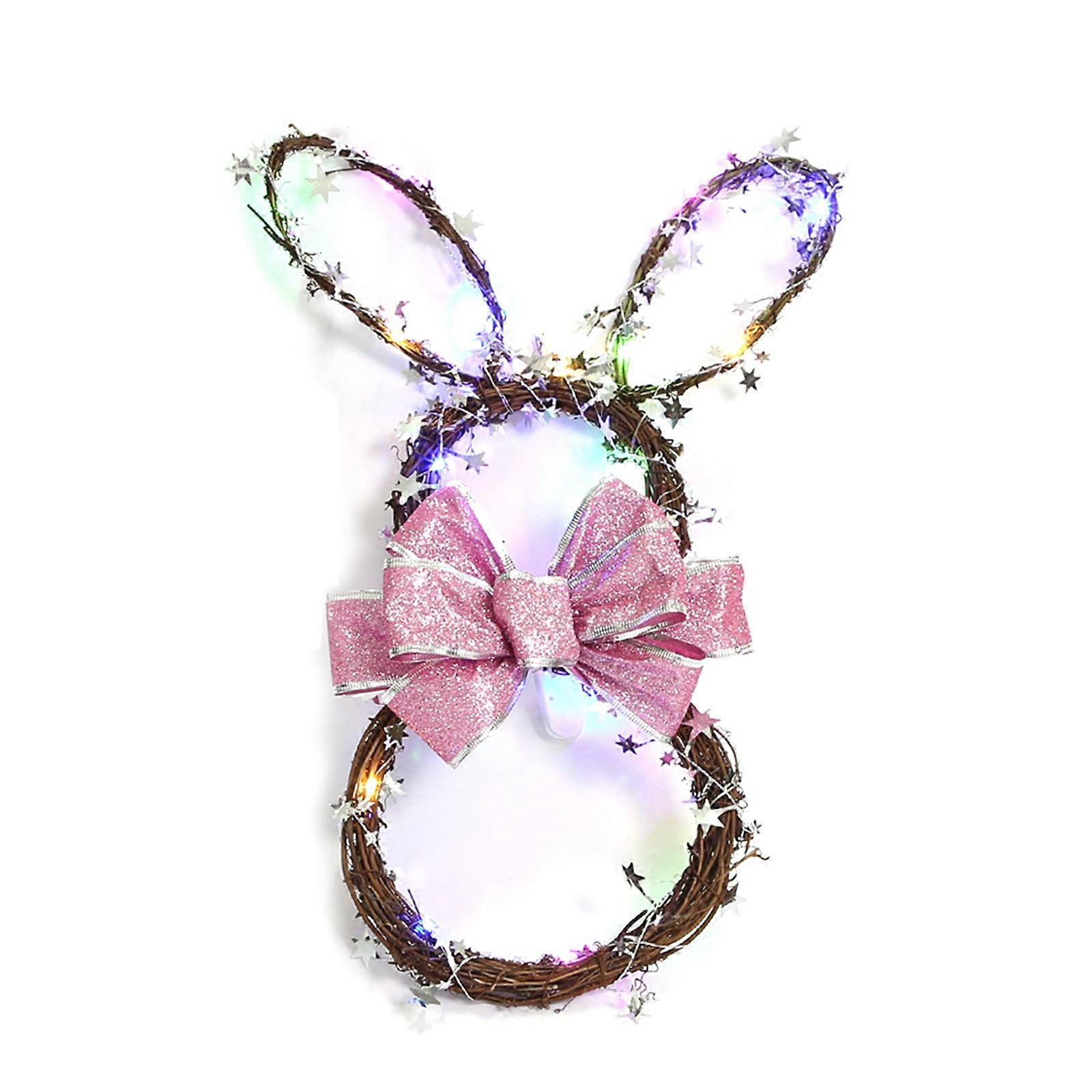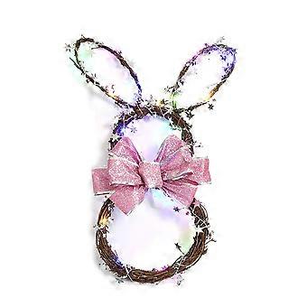 Easter Decorations LED Bunny Wreath Handmade Rattan Garland Light Up Hanging Pendant for Front Door Spring Holiday Home