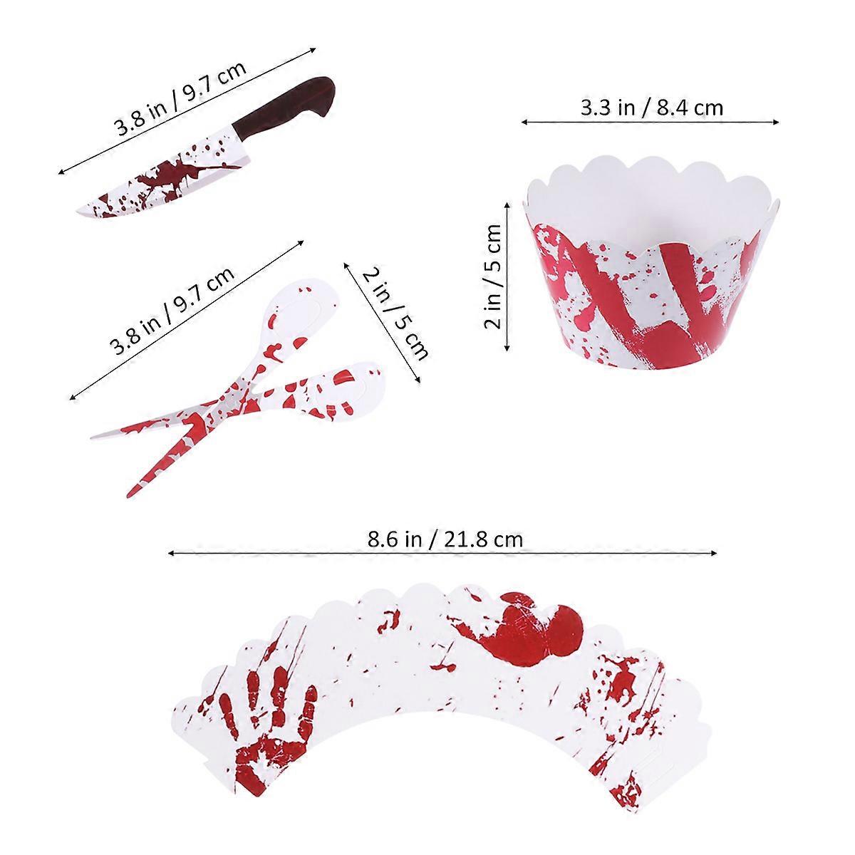 Horror Cupcake Toppers Round Halloween Style Cake Wrapper and Topper Decoration for Halloween Party 12.5x10x2cm 72Pcs