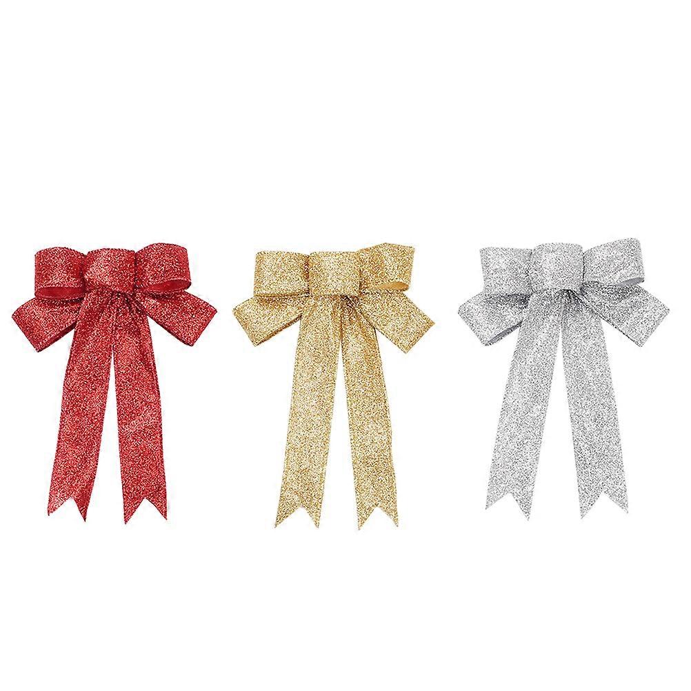 Festive Red Bow Ornaments 3Pcs Christmas Decoration Assorted Color Perfect For Tree Ornaments Gift And Wall Decorations