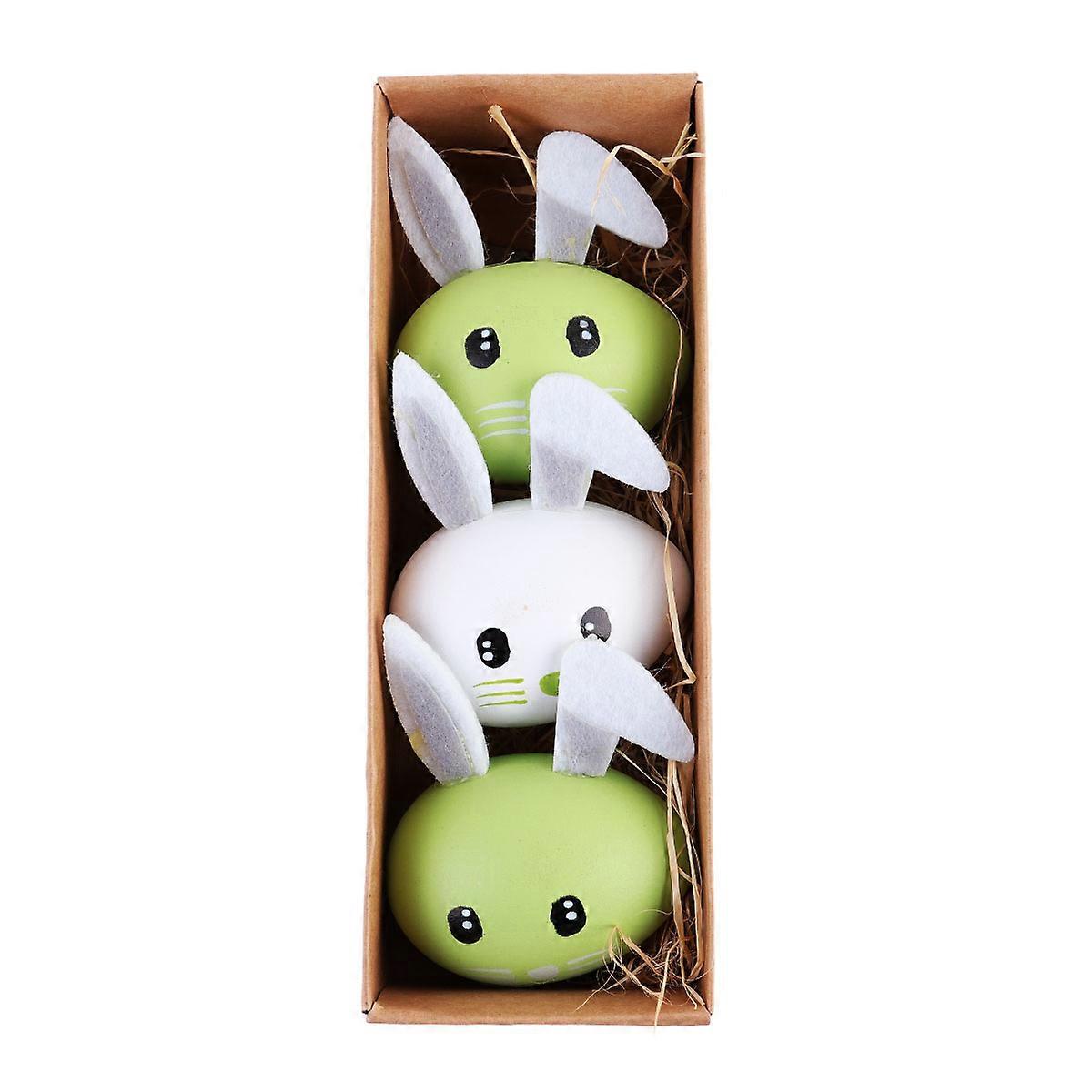 Rabbit Decor Easter Ornament for Decoration 3Pcs Green White Folding Ear Design