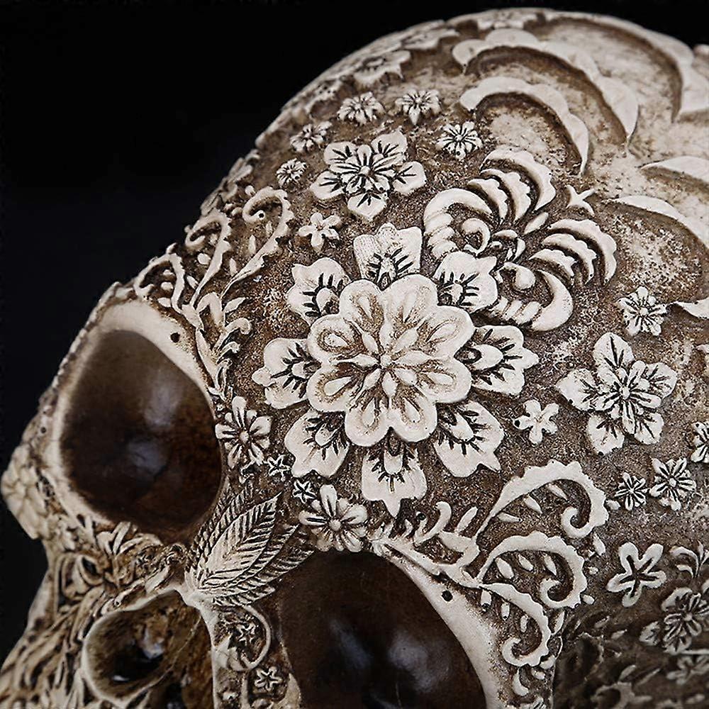Flower Sculpture: The skull decoration has been sculpted with beautiful flowers. Product Size: 1:1 replica human skull. It's 15cm/5.91" high. The length is about 12cm/4.72" and the width is around 17cm/6.69". Product Material: This Halloween skull has been made by high-quality polyresin. Display Ornament: The special resin skull is quite a special display tabletop piece in the bar, coffee shop, home or hotel. Halloween Decoration: This skull is the very eerie Halloween decoration. Size:Skull Decoration Product Name: Resin Human Skull Decoration Material: Polyresin Style: Halloween Type: Creative Trick Skeleton Craft Occasions: Halloween, home, hotel, bar and coffee shop decor