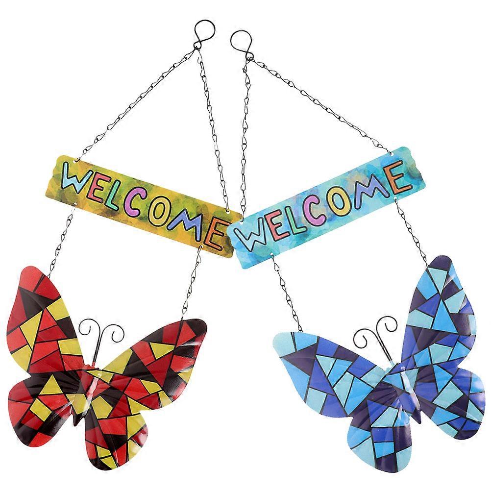 Metal Garden Ornament Butterfly Shaped Sign Wall Hanging Homeowners 2Pack
