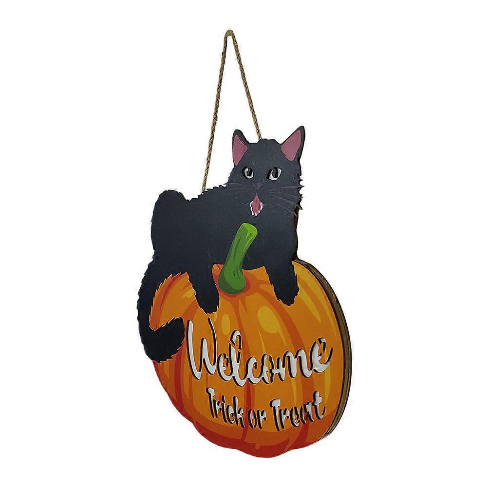 Door Decoration Halloween Themed Sign Cat Shape Halloween Wall Sign For Event Organizers Wood 31x30x0.5cm 1Set