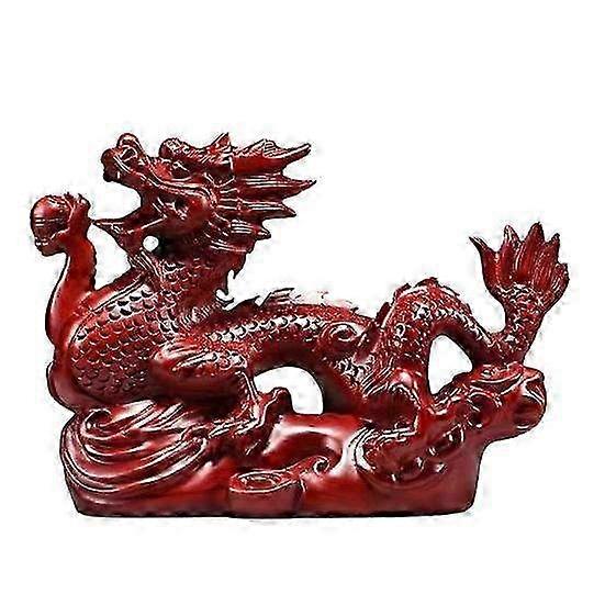 Lucky Chinese Feng Shui Dragon Ornament - Wooden Figurine Statue for Home & Office Decoration - Unique Dragon Animal Decor