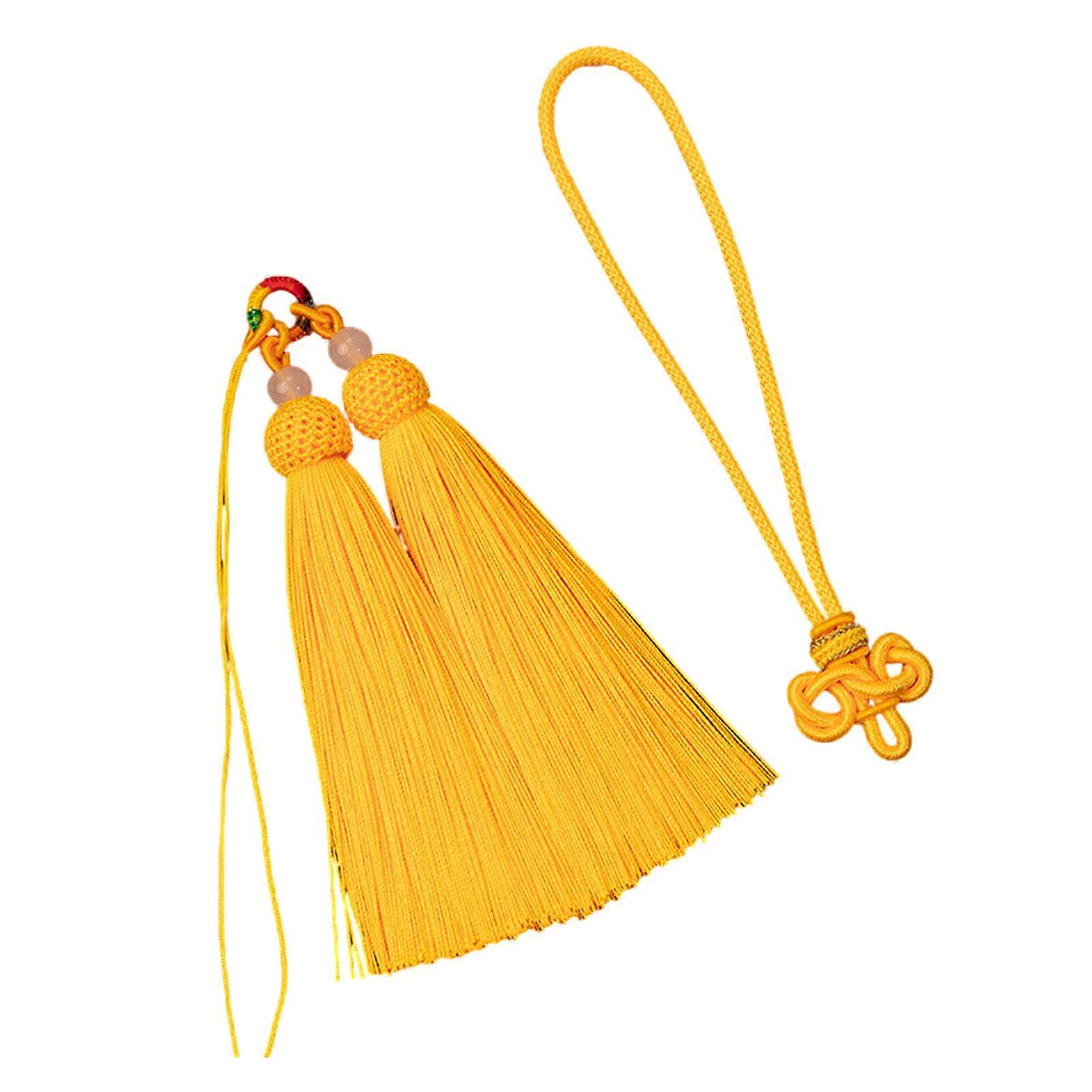Traditional Braiding Craft Double Tassels Car Ornament Versatile Polyester Keychain Accessory Yellow