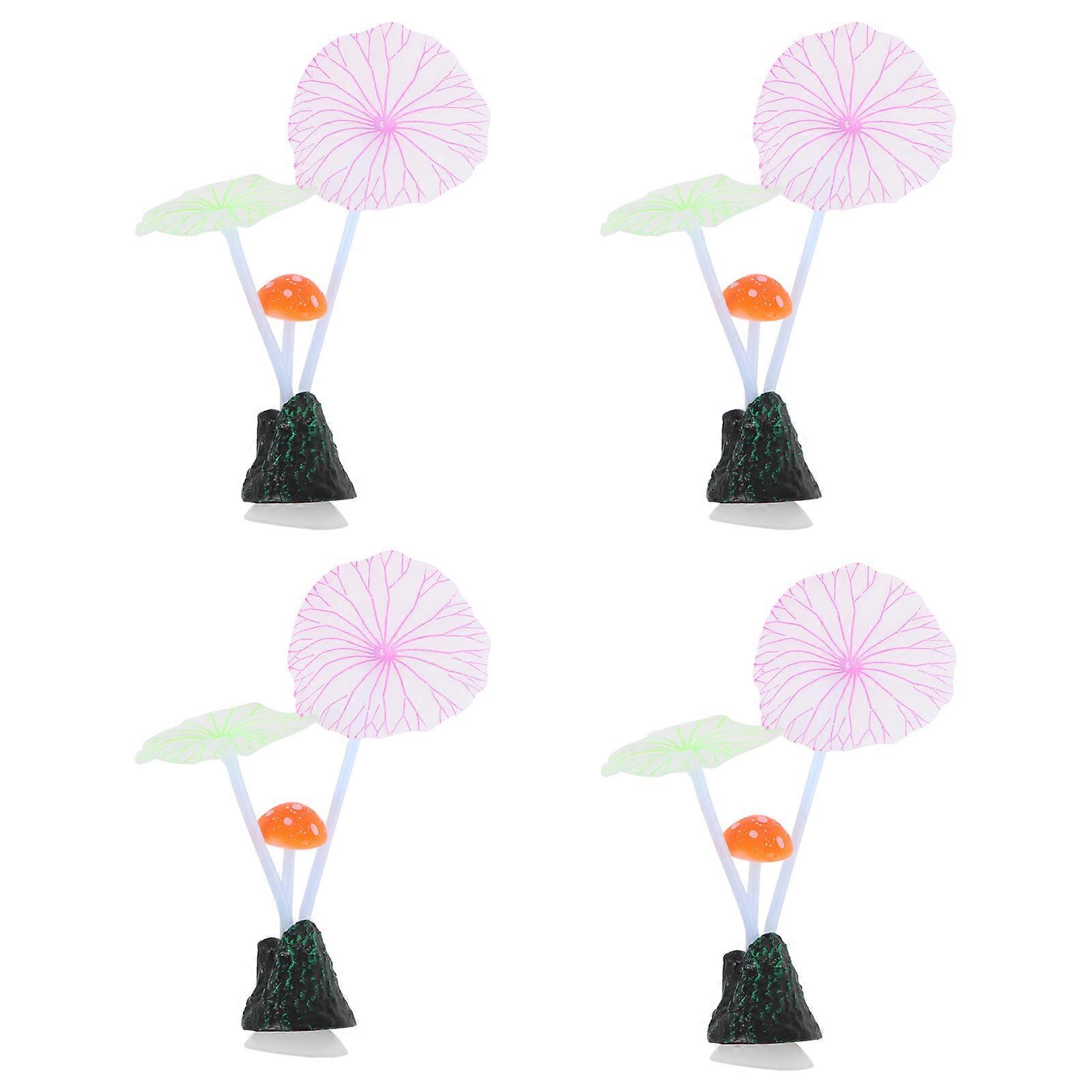 Fish Tank Decoration Ornament Glowing Lotus Leaf Shape Silicone Aquarium Landscape Decor 4Pcs