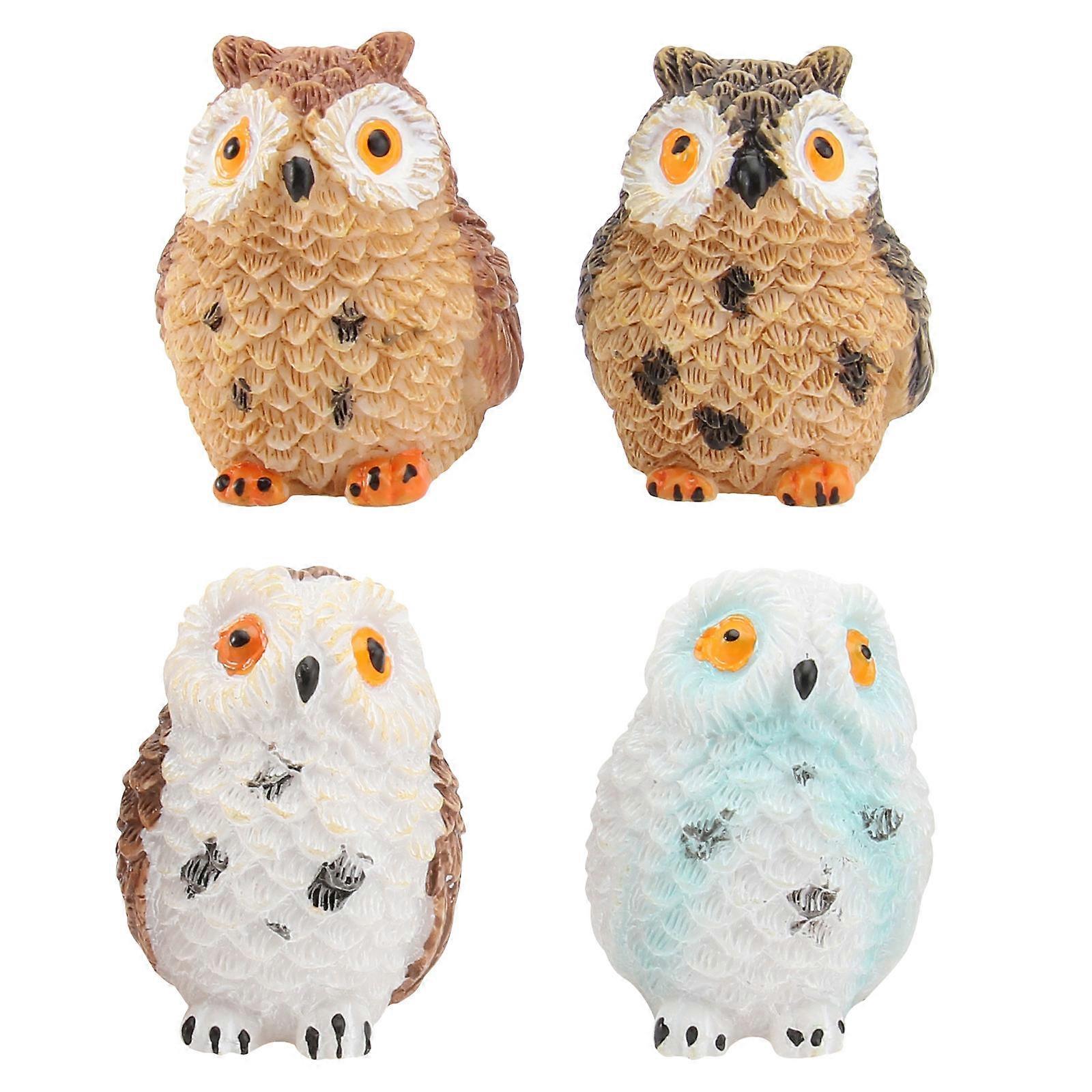 Miniature Decoration Lucky Mini Owl Figurine Photo Prop Coffee 4Pcs