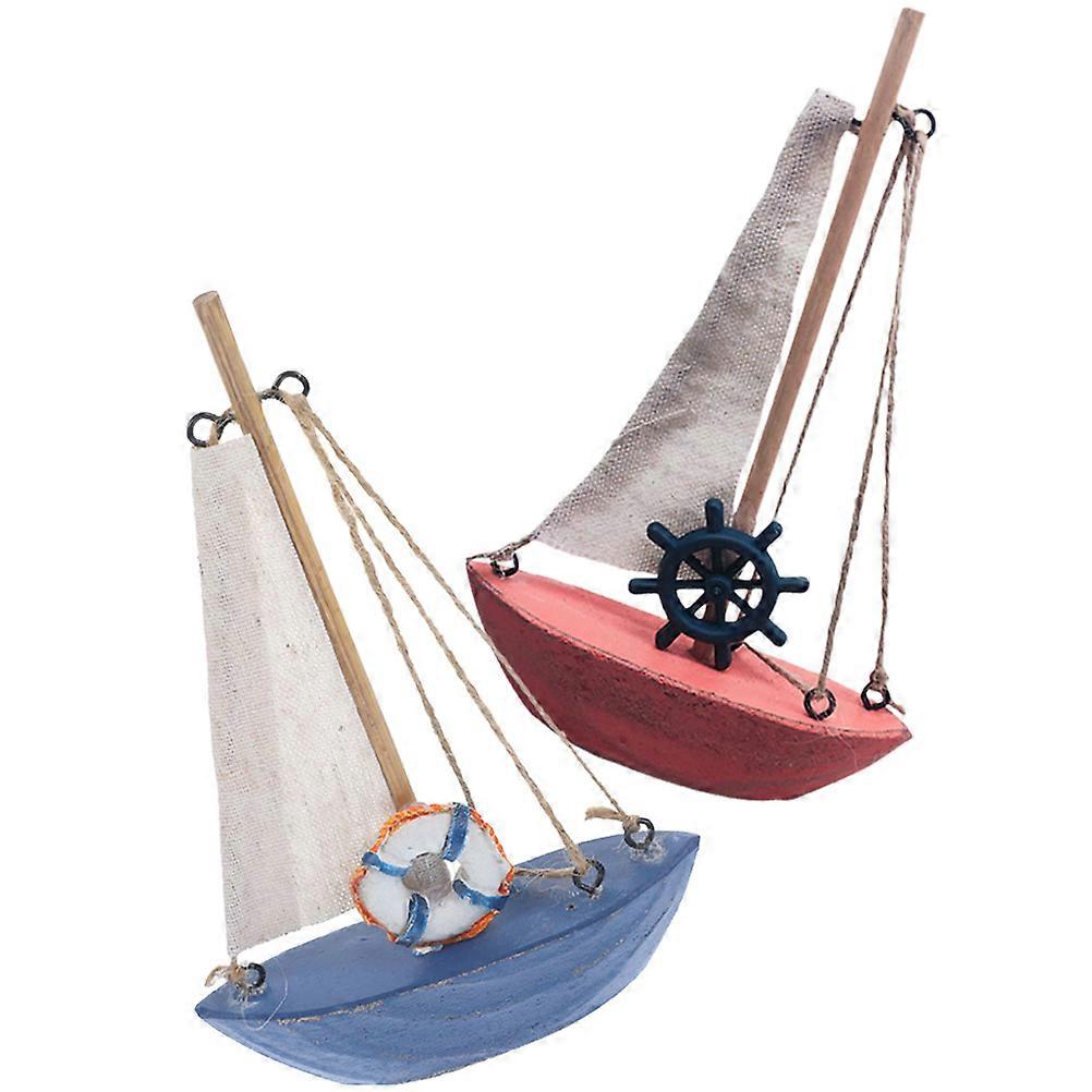 Sailboat Decoration Creative Sailboat Model Coastal Theme Office Use 11x3x17cm Wood Fabric 2Pcs