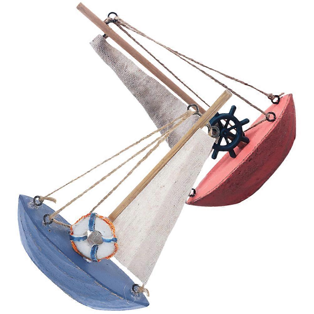 Sailboat Ornament for Desktop 8Pcs Mediterranean Wooden Model Miniatures