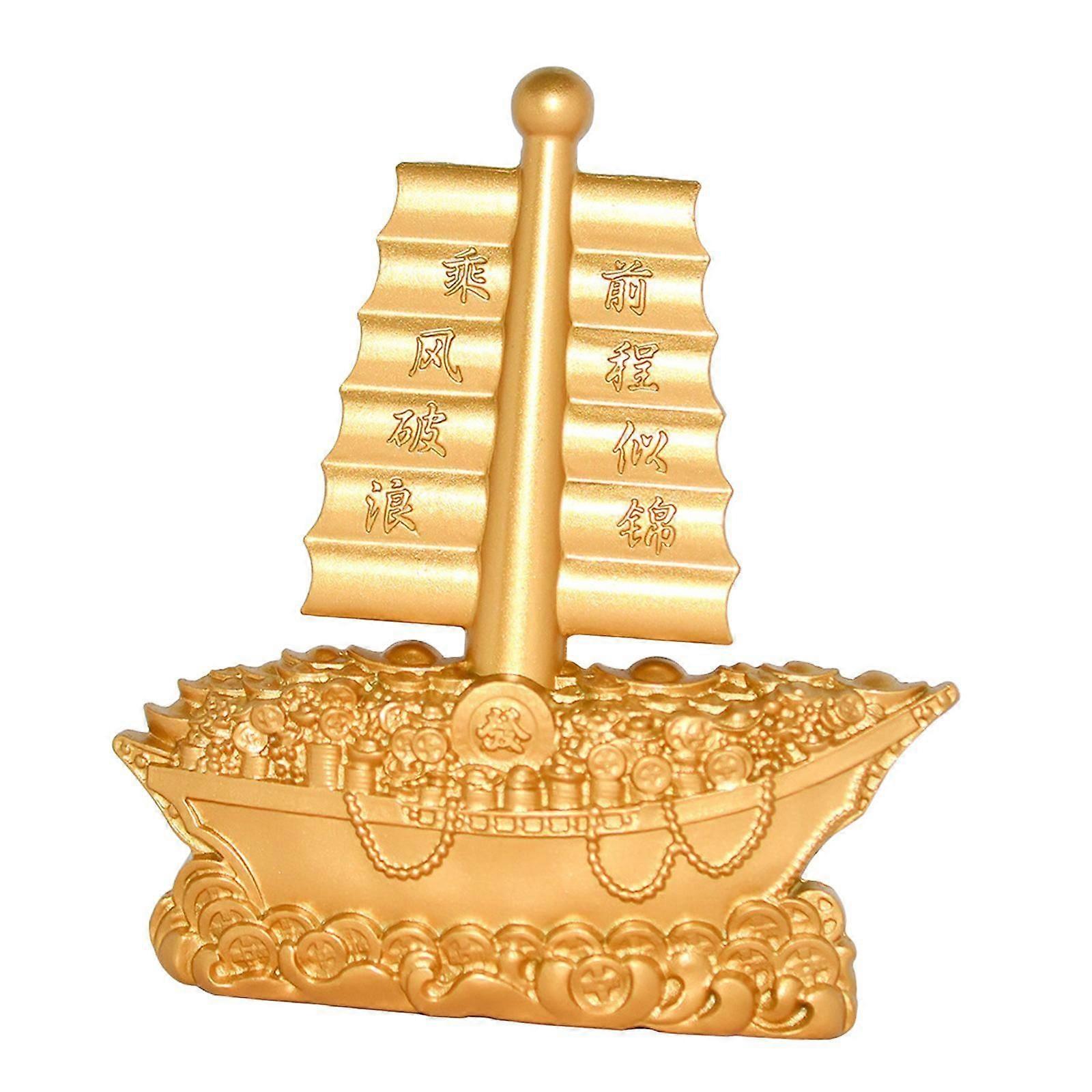 Golden Sailboat Ornament Present Sculpture for Decorative Restaurant Table