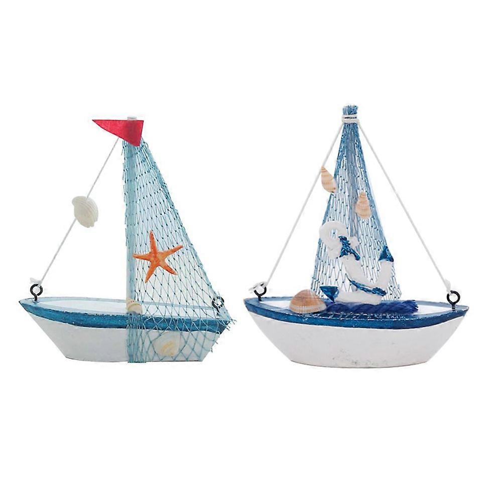Mediterranean Style Wooden Sailboat Ornament for Table Decor 2Pcs Set