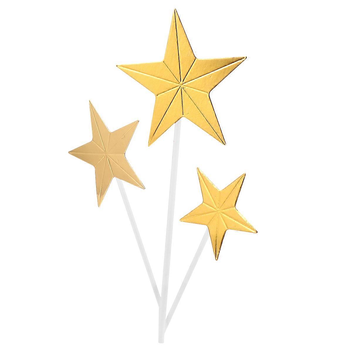 3D Star Cake Topper for Cake with 1Set Golden Creative Picks Set