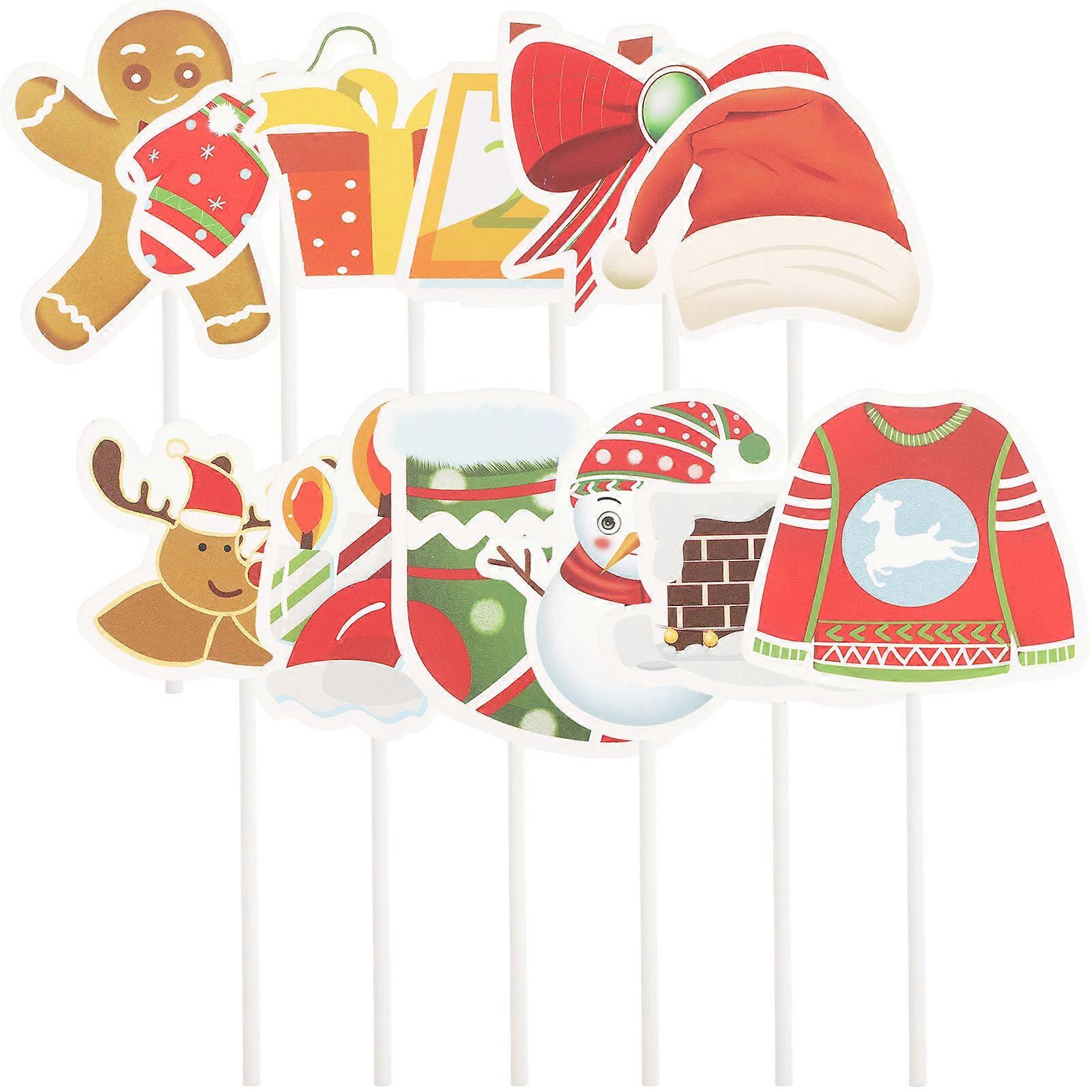 Decoration Christmas Cake Topper Merry Christmas Picks Commercial Users Plastic Material 12Pcs