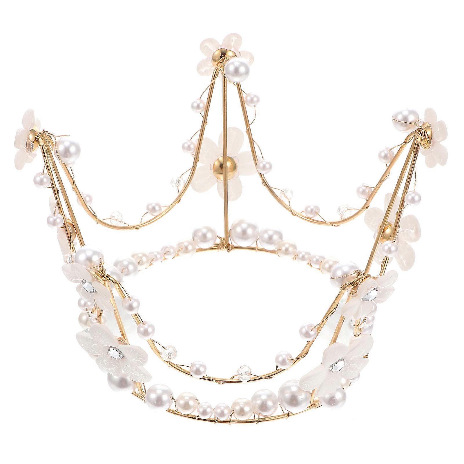 Durable Pearl Crown Headdress Cake Ornament Assorted Decoration for Birthdays 1pc