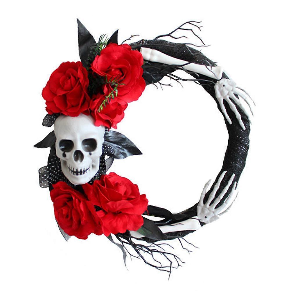 Halloween Wreath Rose Flower Decoration Front Porch Wreath Dried Branches Plastic Halloween Theme Design 1Pack