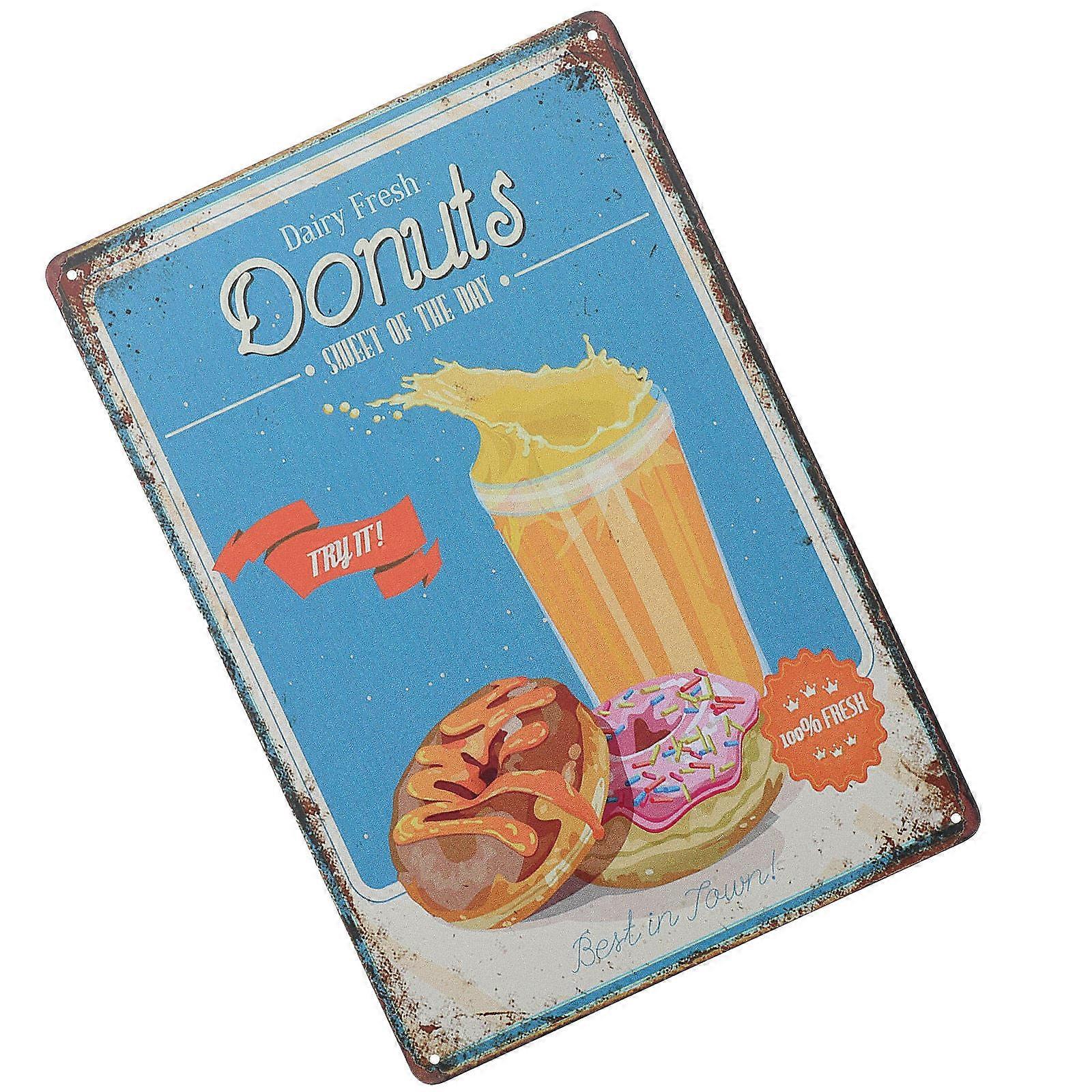 Wall Decoration Iron Sheet Donut Pattern Picture Retro Style 30x20cm Homeowners 2Pcs