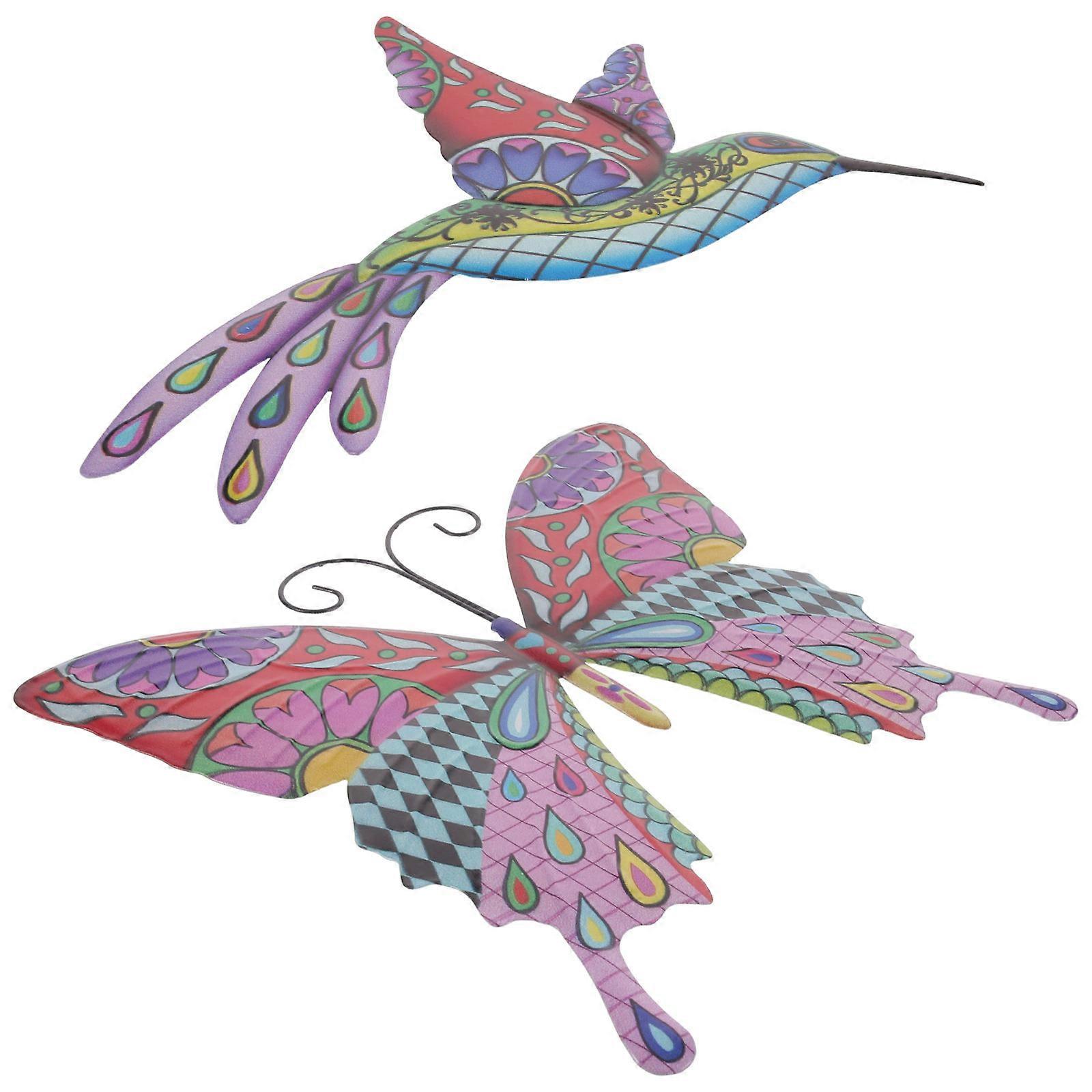 Metal Hummingbird Wall Decor for Wall Art 2Sets Iron Butterfly Sculpture