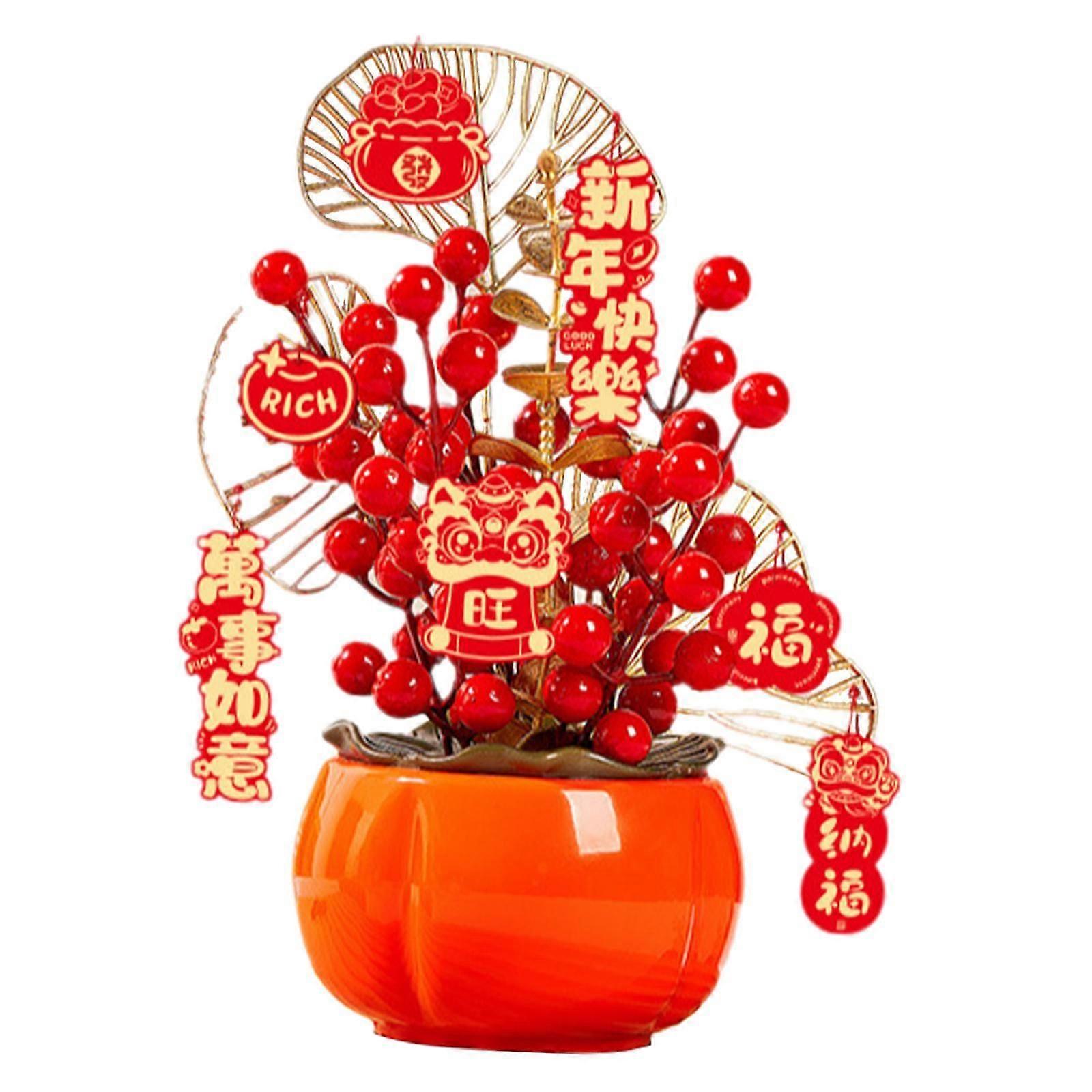 Chinese Lunar New Year Decoration Fake Flower Bucket for Table Home Birthday Berry S