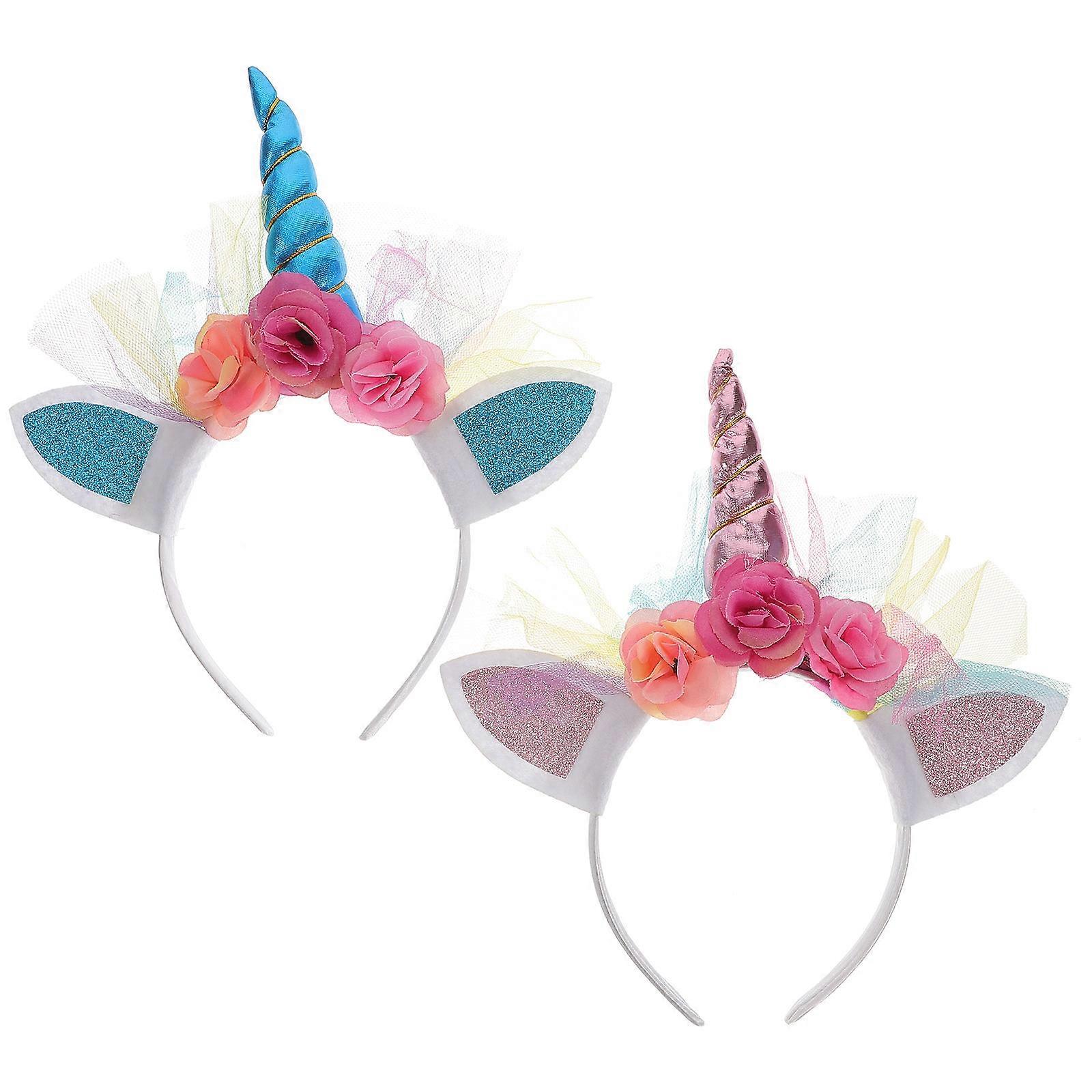 Cute Headband Decoration Unicorn Headband With Mesh And Flower Blue Girls Kids Party Headdress 10 03x9 25x2 36inch 2Pcs