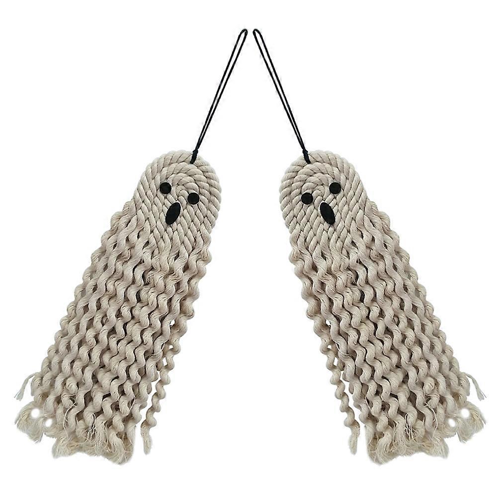 Halloween Ghost Decoration 2Pcs Hand-Woven Wall Hanging Perfect For Haunted House And Halloween Scene Decoration Light Grey Color