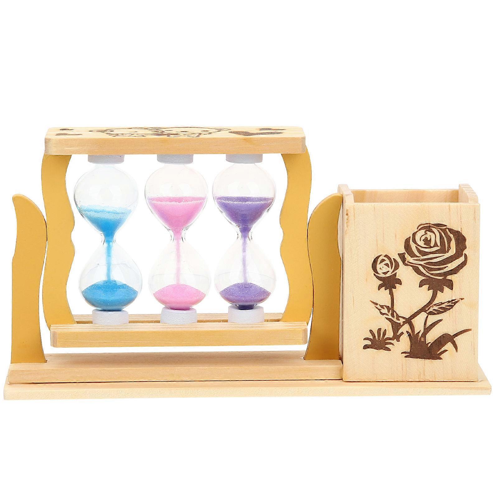 Tabletop Decoration Unique Pen Holder for Desk Hourglass Shape Creative Design Wood Material Home Office Cabinet 1Pack
