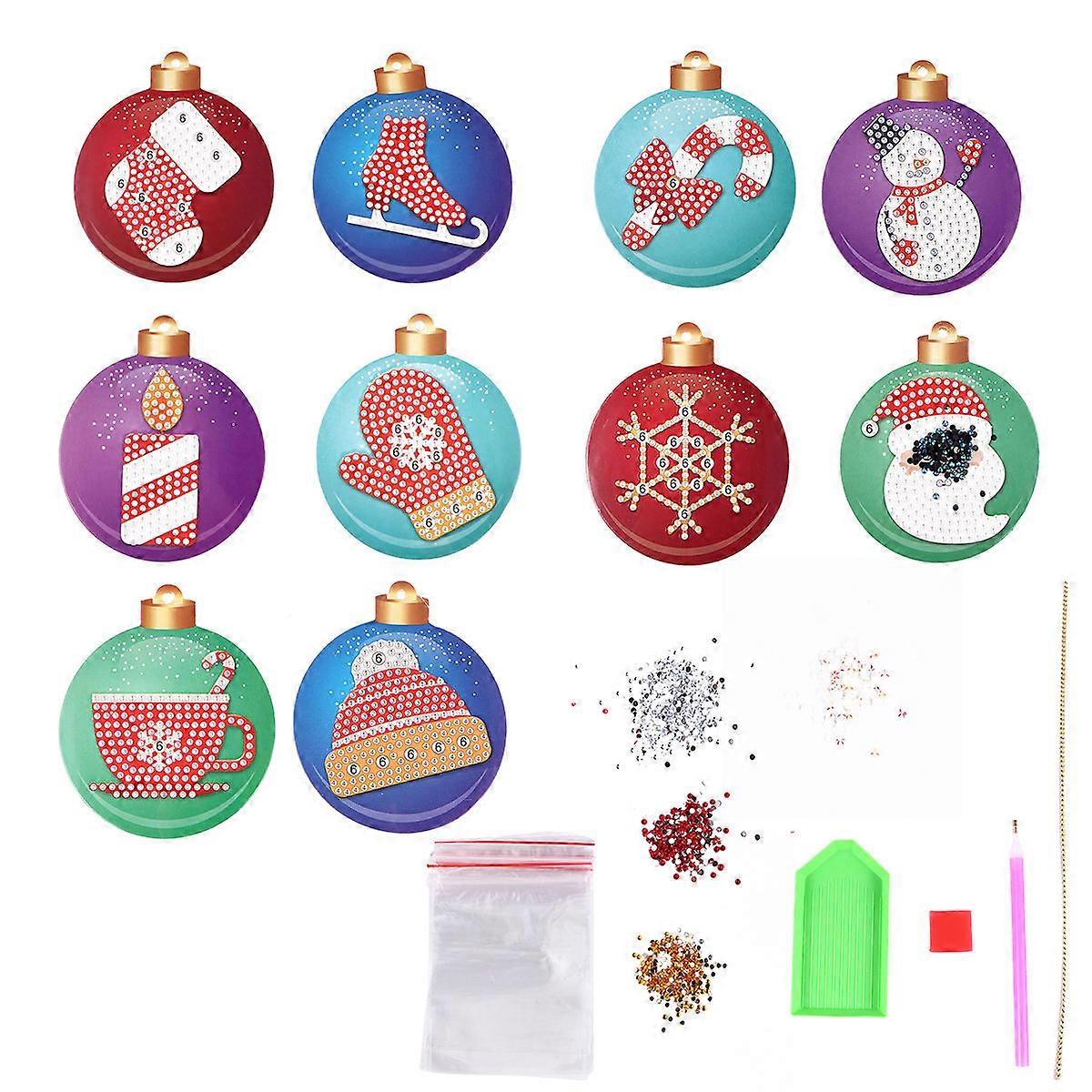 Hanging Ornament Artificial Drill Painting Decor Christmas Tree Decoration Assorted Color 6x6cm 10Pcs
