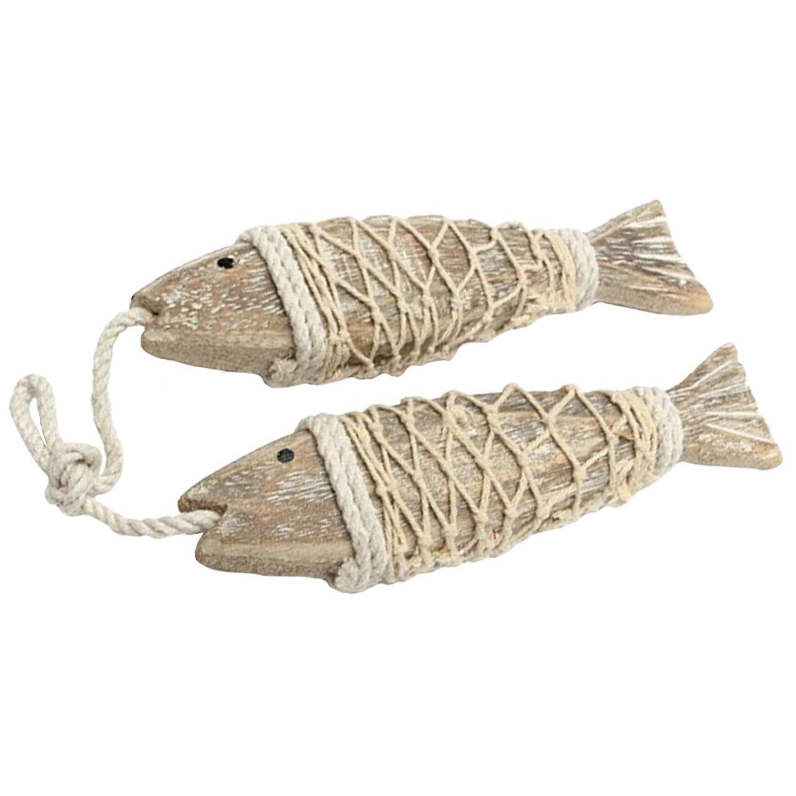 Wooden Fish Hanging Ornament Nautical Wall Decor for Home 2Pcs Set
