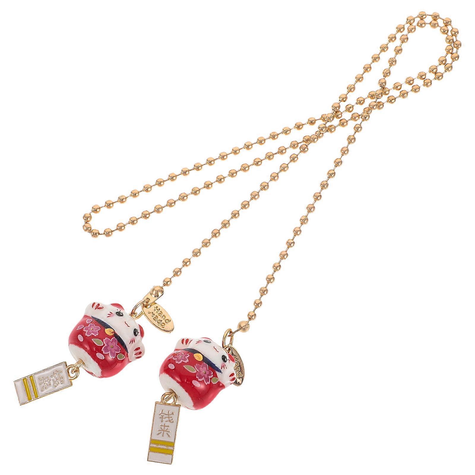 Ceramic Lucky Cat Car Charm Fortune Cat Hanging Ornament 2Pcs for Protection