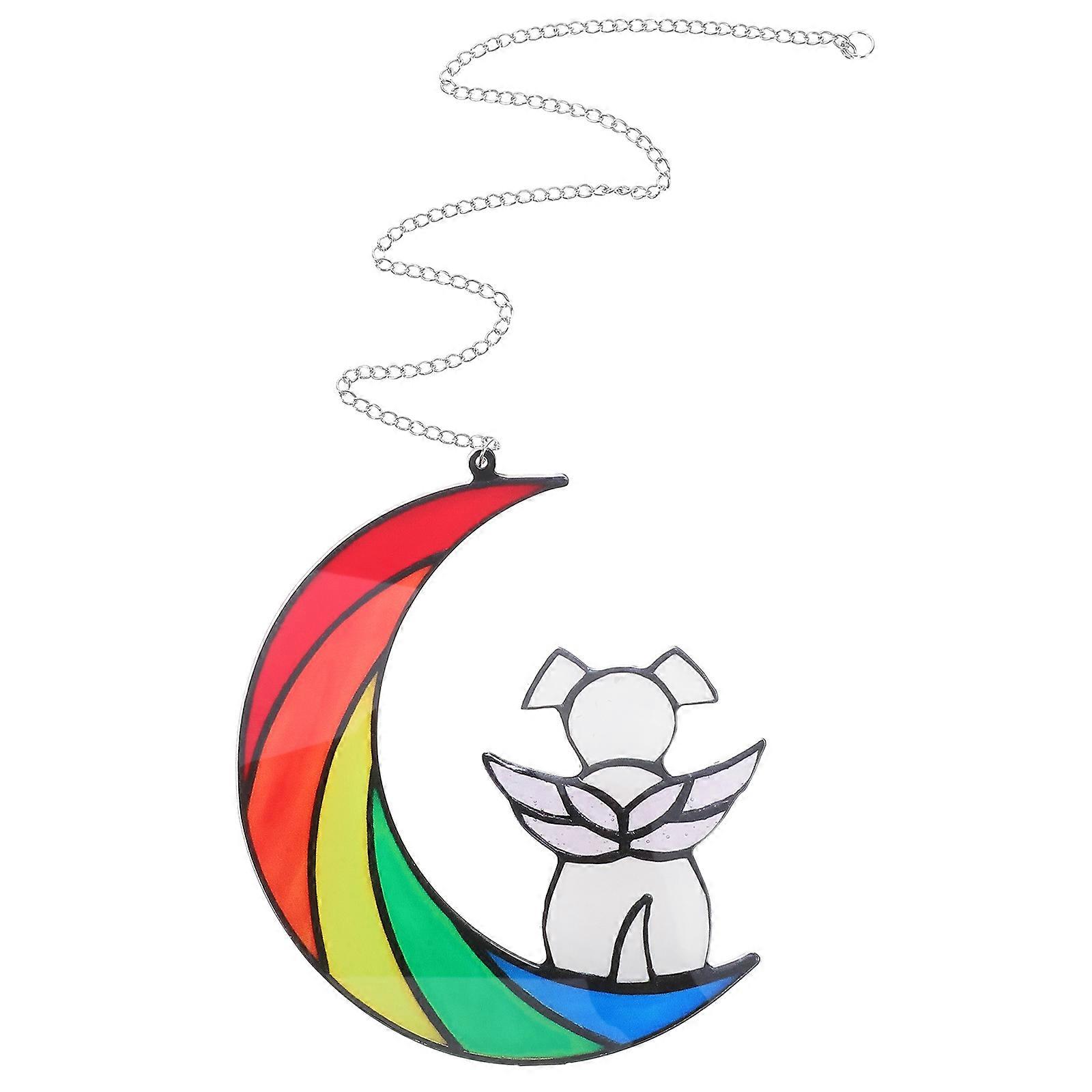 Elegant Acrylic Dog Moon Hanging Ornament for Pet Loss Remembrance – Minimalist Indoor Outdoor Home Decor Window Pendant for Dog Owners