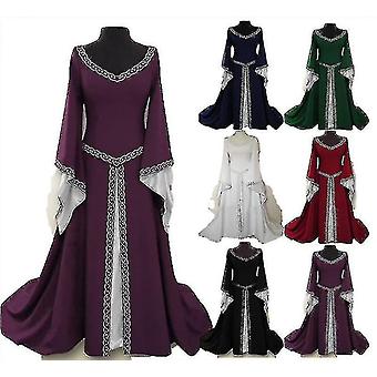 Classic Long Medieval Women's Halloween Partyv Neck Slim Flared Sleeve Dressfyfs1983164