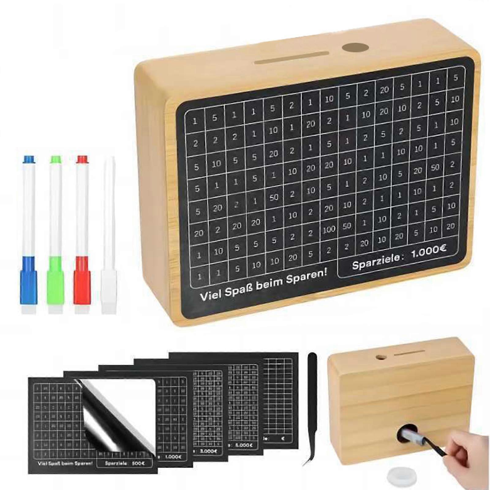 Classical Wood Piggy Banks Cash Saving Box with Targets Slot and Number Money Box for Home Decors Financial Education Gold