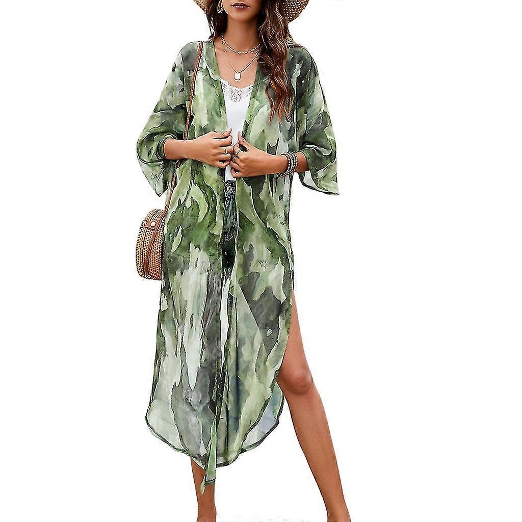 Classical Floral Print Women Summer Cardigan Skin-friendly Wrap Large Blouse