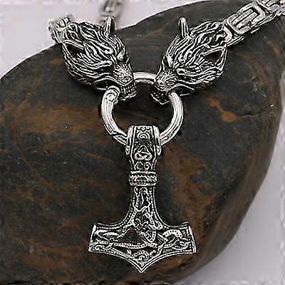 Stainless Steel Celts Wolf Heads Chain Amulet Thor Hammer Mjolnir Odin Symbol Talisman Viking Jewelry Mens Necklaces Pendants