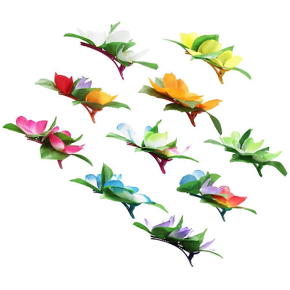 Elegant Hawaiian Floral Hair Clips 10pcs Colorful Hairpins for Women, Easy Grip Barrettes for Beach, Party & Wedding Tropical Style Accessories