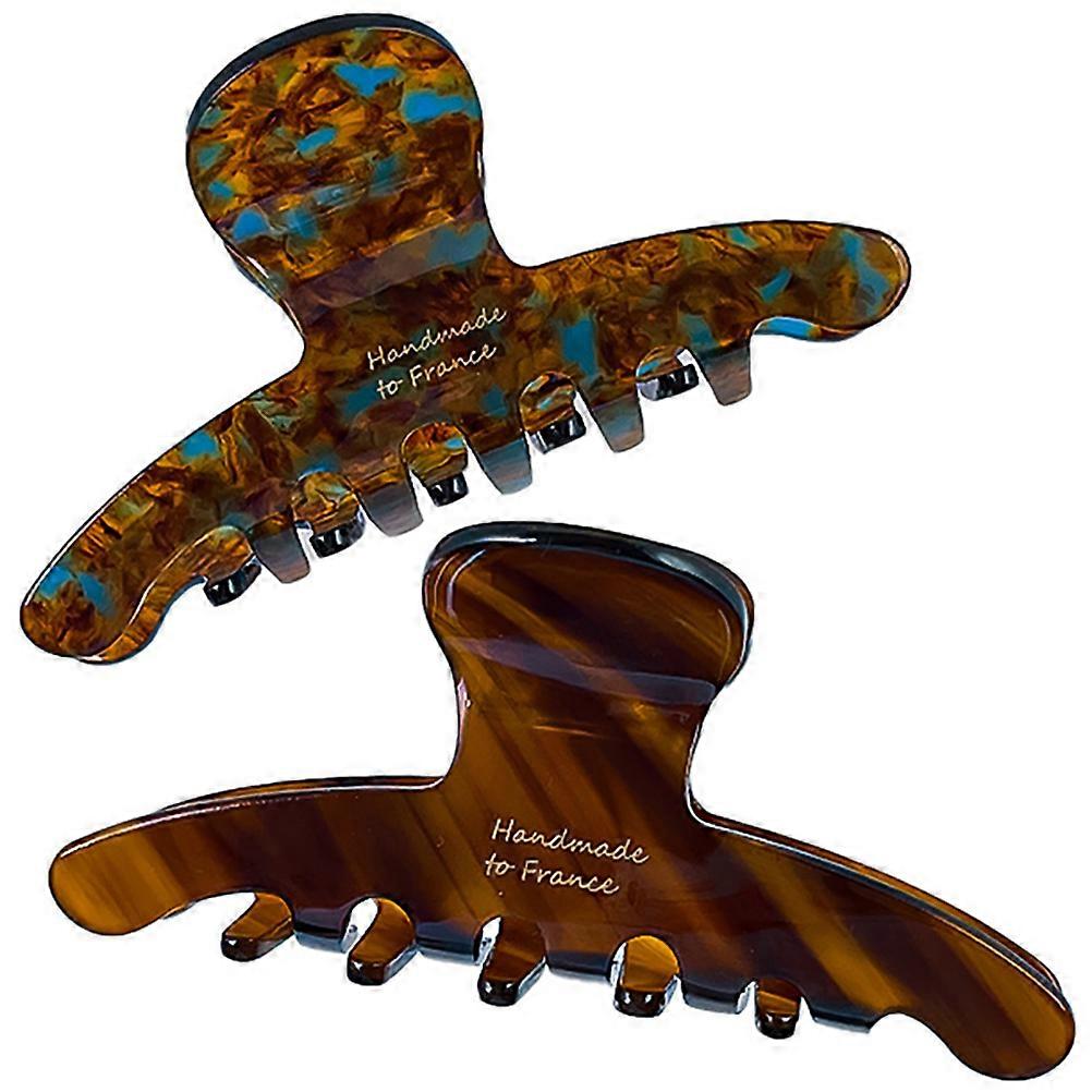 Acetate Hair Claw Clips for Women Nonslip Jaw Clips in Gradient Blue, Brown & Amber Caramel Stylish Hair Accessories Set of 2