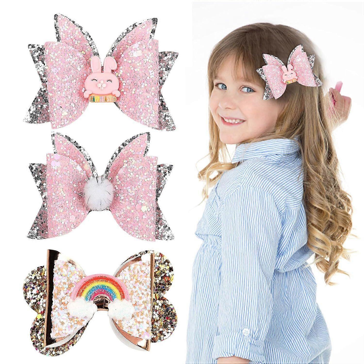Easter Bunny Hair Bow Clips Easter Rabbit Hair ClipsGlitter Leather Bow Hair