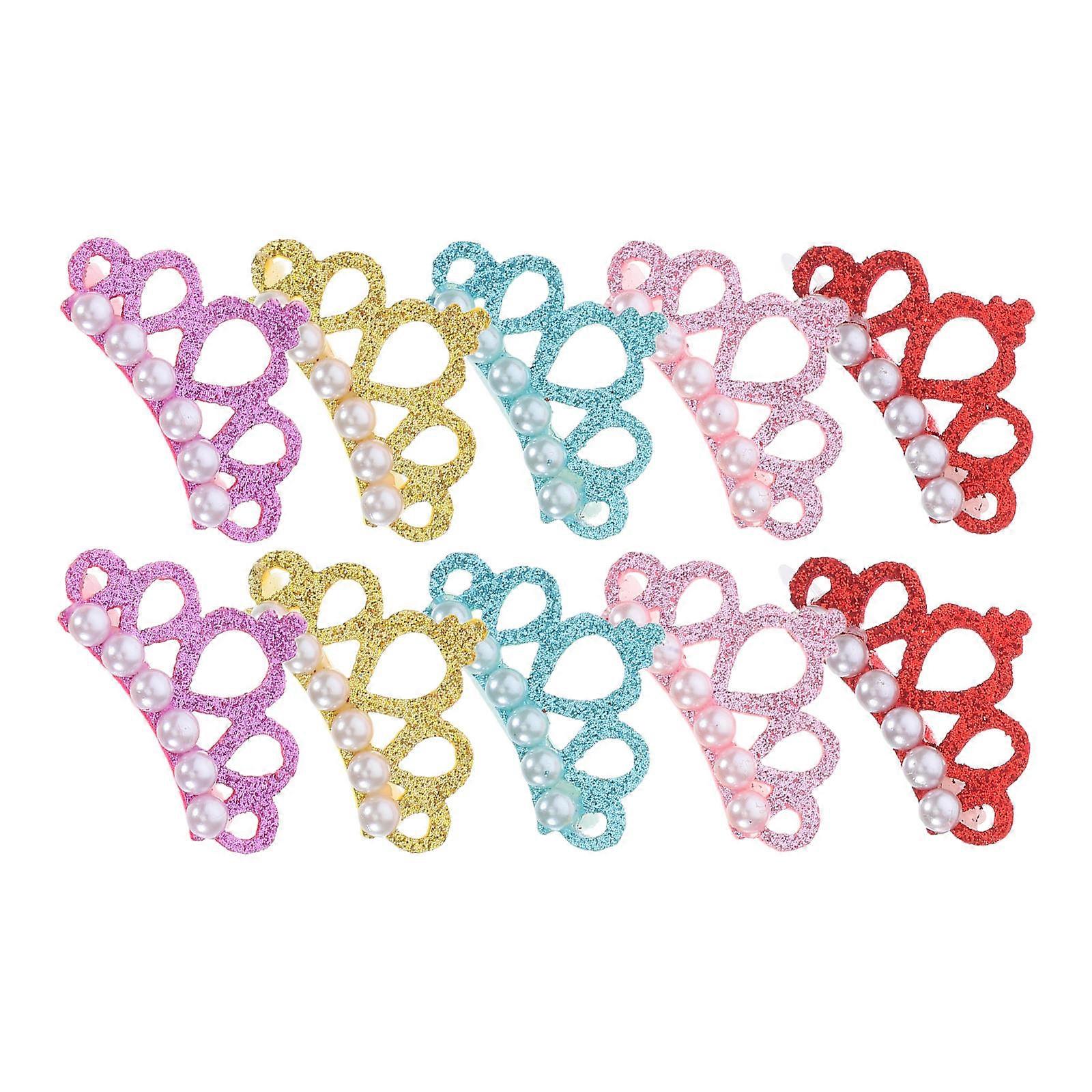 Crown Shaped Pet Hair Clips 10 Pcs Adorable Dog Headwear Accessories in Yellow, Lake Blue, Pink, Bright Red for Parties and Photos