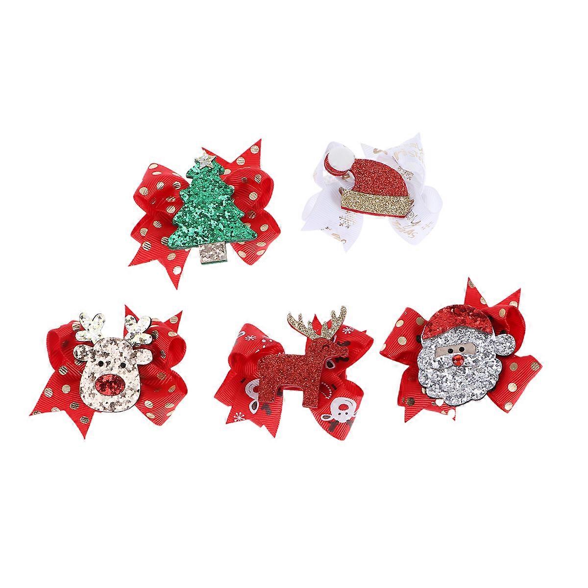 Glitter Hair Clips Fun Christmas Tree Deer Barrettes Assorted Color Family Photos 5Pcs
