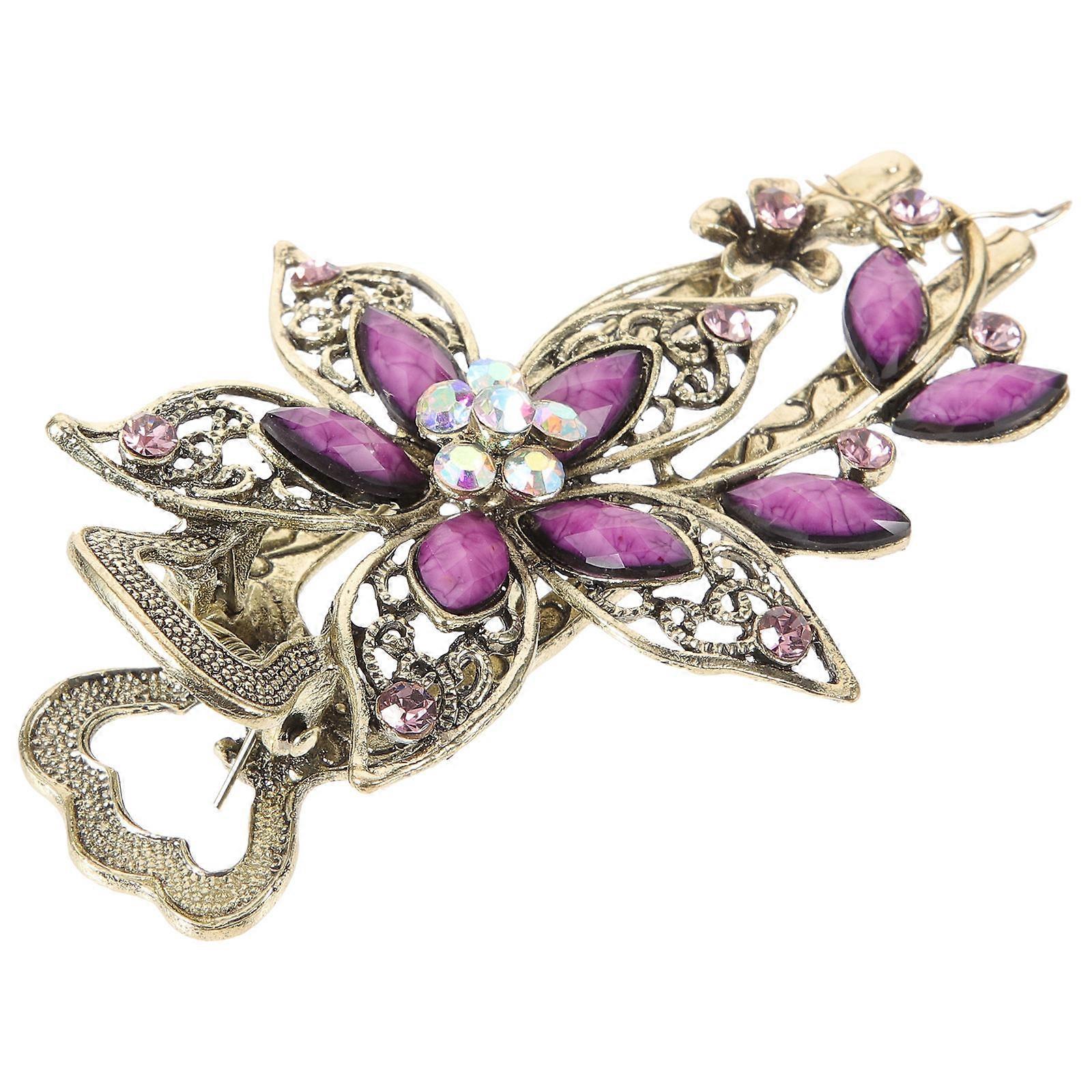Vintage Crystal Hair Clips Barrettes Hair Accessories 1 Set Purple