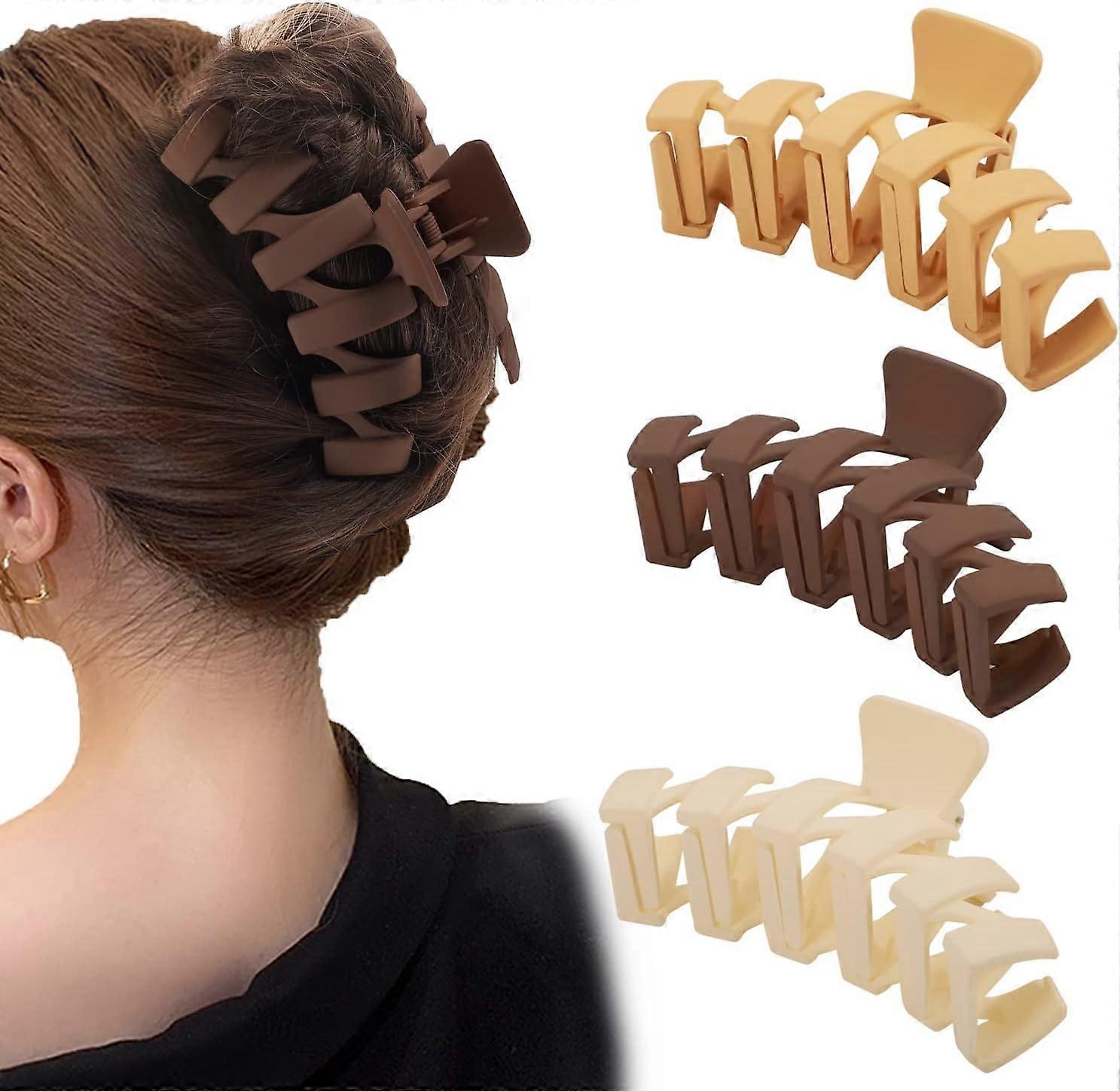 Large Women Hair Clips, 3pcs Non-Slip Hair Clips Thick Hair Clips for Women Girls Thick Thin Hair (Khaki, Brown, Beige),2024 Ping