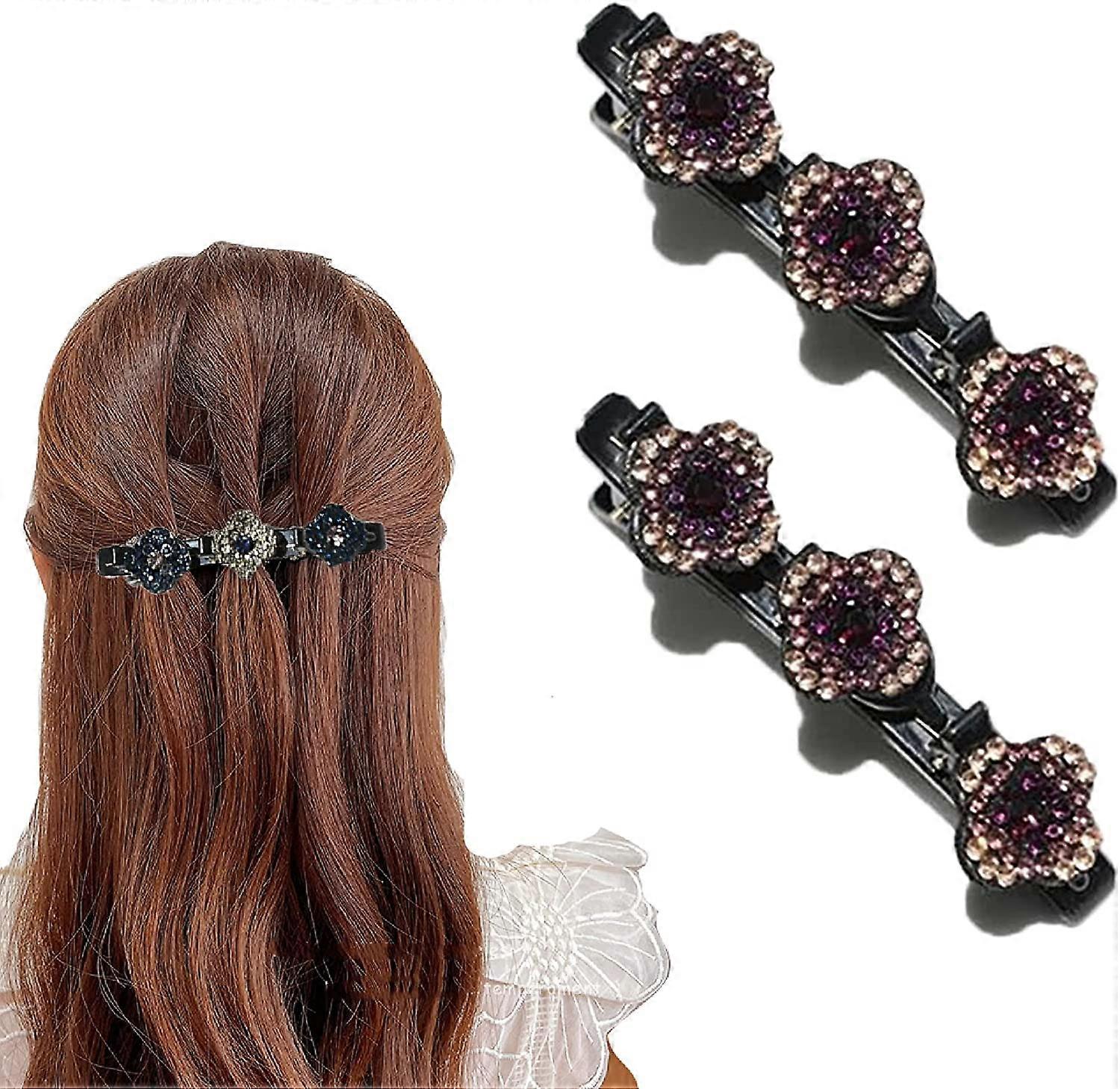 Sparkling Crystal Stone Braided Hair Clips, Satin Fabric Hair Bands, Rhinestone Hair Clips, Braided Hair Clip with Rhinestones for Women/Girls (A Set)