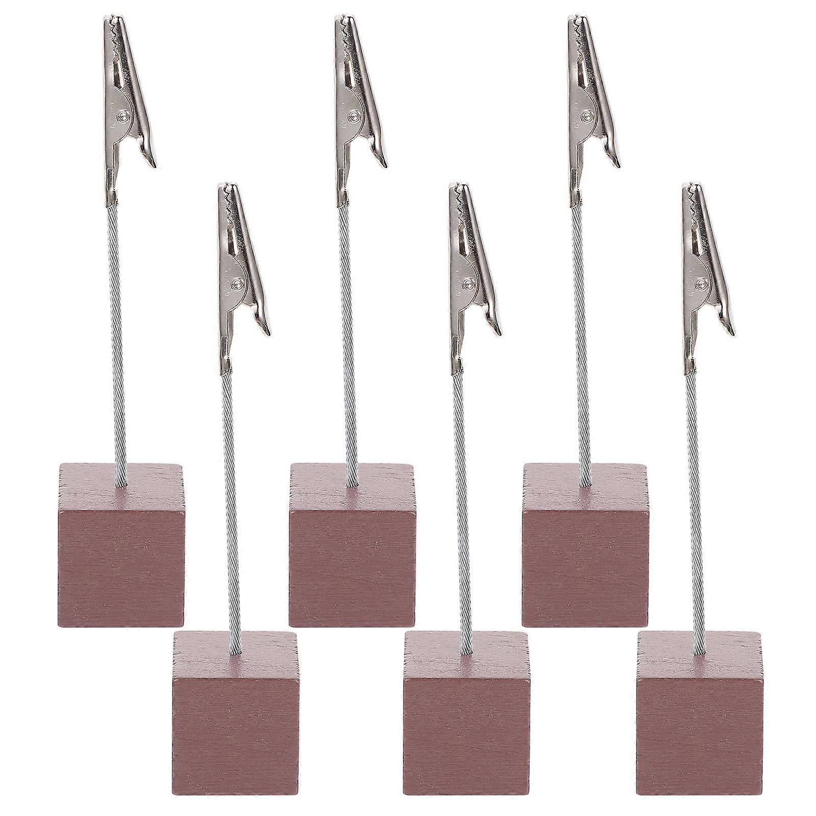 Photo Clips Memo Clip for Storage 6Pcs Coffee Color Wooden Iron
