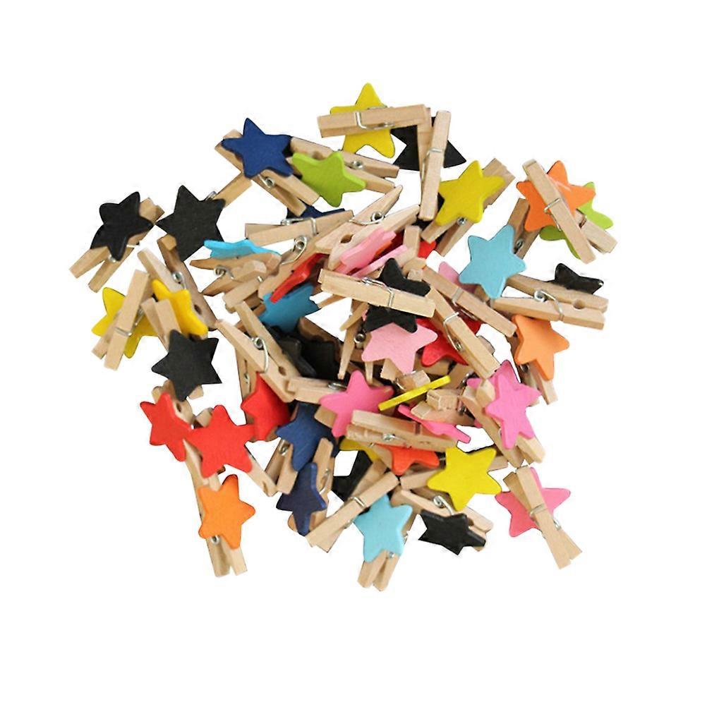Mini Wooden Clips Five-Pointed Star Clip for Hanging Pictures 50Pcs